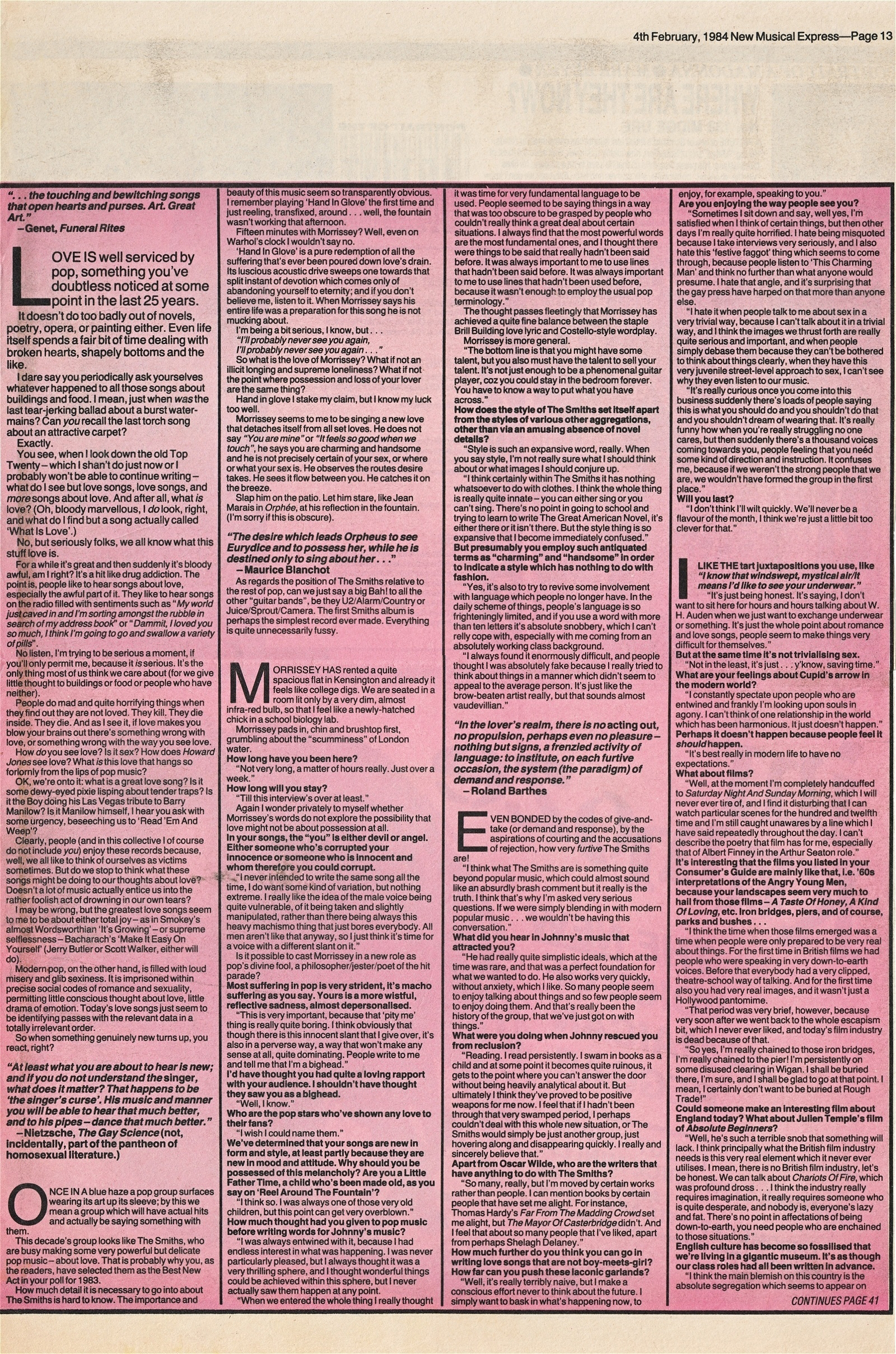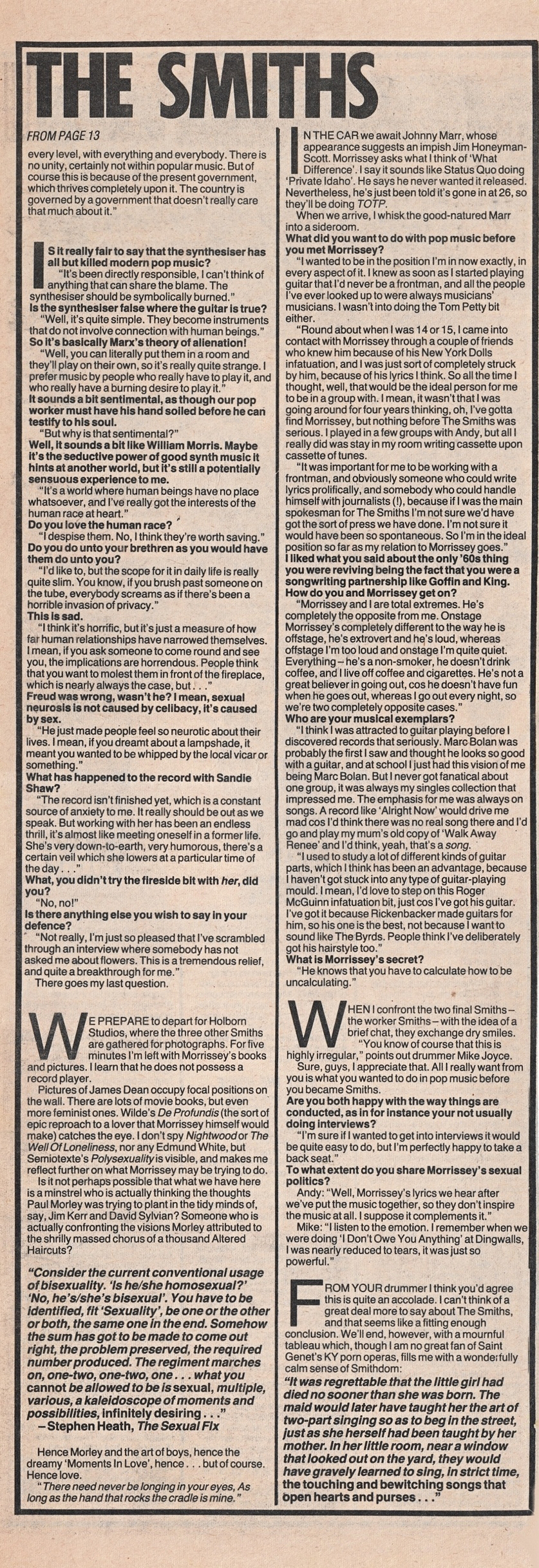 NME – 4 February 1984 Posted byNick StuckenborgJanuary 5, 2020May 17, 2020Posted inNMETags:1984, interview, NME, Smiths, Smiths 1984 Share this: Share on X (Opens in new window) X Share on Facebook (Opens in new window) Facebook Like Loading... Related Published by Nick Stuckenborg Archivist. Cinematographer. View more posts