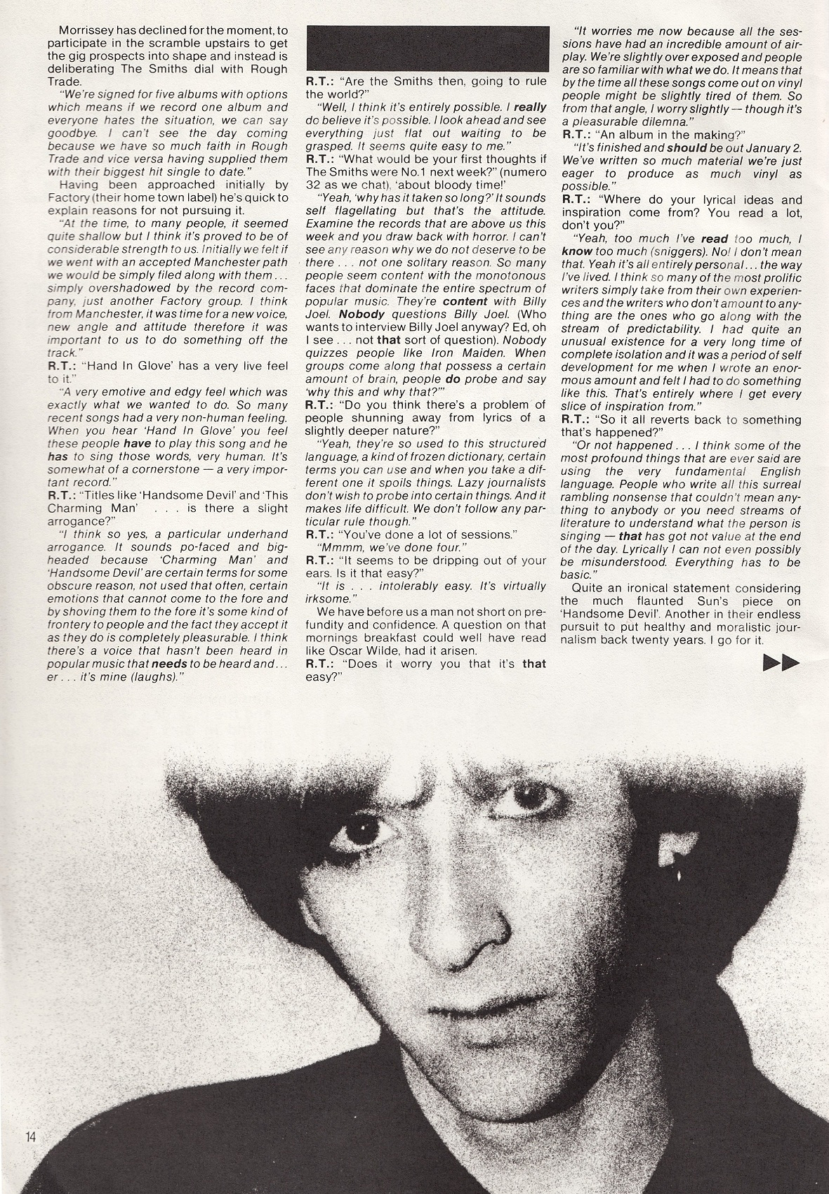 Rorschach Testing – Early 1984 Posted byNick StuckenborgJanuary 6, 2020May 17, 2020Posted inRorschach TestingTags:1984, interview, Rorschach Testing, Smiths, Smiths 1984 Share this: Share on X (Opens in new window) X Share on Facebook (Opens in new window) Facebook Like Loading... Related Published by Nick Stuckenborg Archivist. Cinematographer. View more posts
