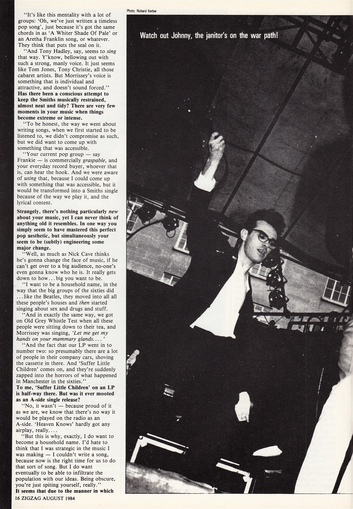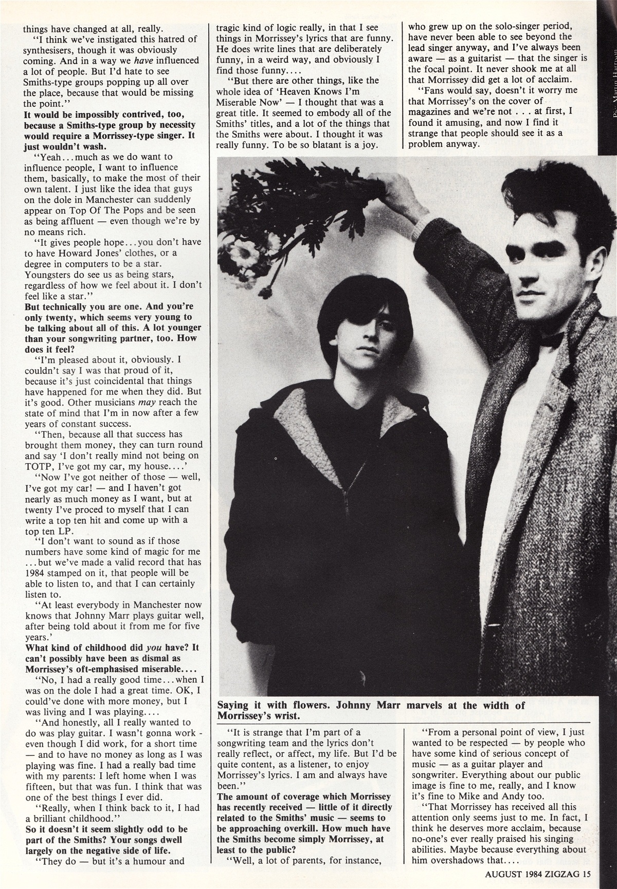 Zig Zag – August 1984 Posted byNick StuckenborgJanuary 6, 2020May 17, 2020Posted inZig ZagTags:1984, interview, Smiths, Smiths 1984, Zig Zag Share this: Click to share on X (Opens in new window) X Click to share on Facebook (Opens in new window) Facebook Like Loading... Related Published by Nick Stuckenborg Archivist. Cinematographer. View more posts