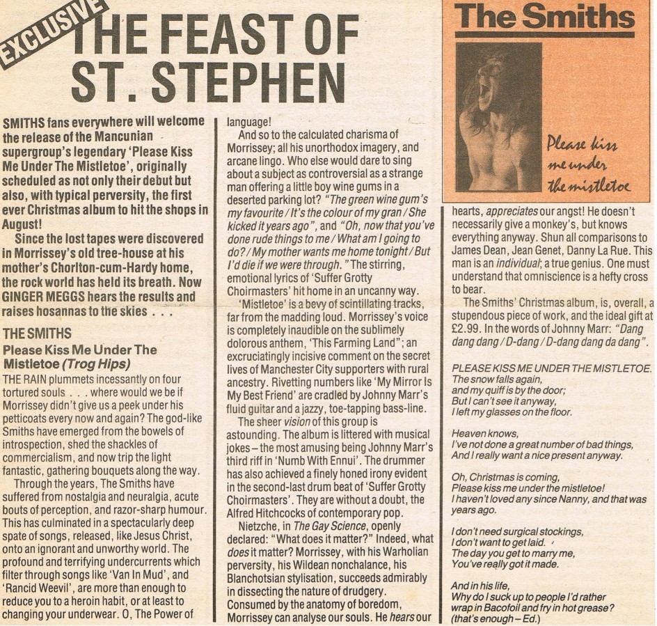 “The Feast of St. Stephen” – 1984 Posted byNick StuckenborgJanuary 14, 2020May 17, 2020Posted inoddityTags:1984, NME, oddity, Smiths, Smiths 1984 Share this: Click to share on X (Opens in new window) X Click to share on Facebook (Opens in new window) Facebook Like Loading... Related Published by Nick Stuckenborg Archivist. Cinematographer. View more posts
