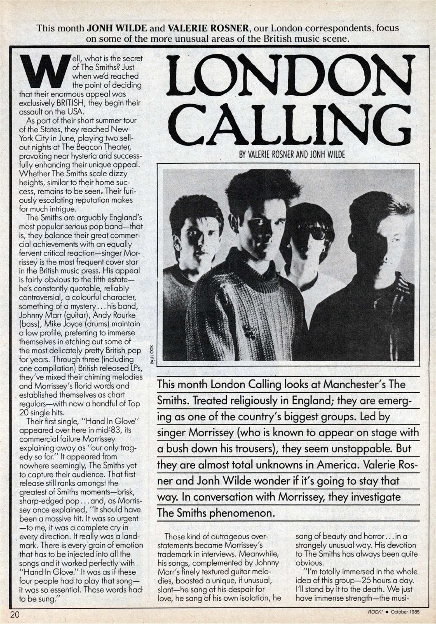 Rock! – October 1985 Posted byNick StuckenborgFebruary 5, 2020May 17, 2020Posted inRock!Tags:1985, interview, Rock!, Smiths, Smiths 1985 Share this: Click to share on X (Opens in new window) X Click to share on Facebook (Opens in new window) Facebook Like Loading... Related Published by Nick Stuckenborg Archivist. Cinematographer. View more posts