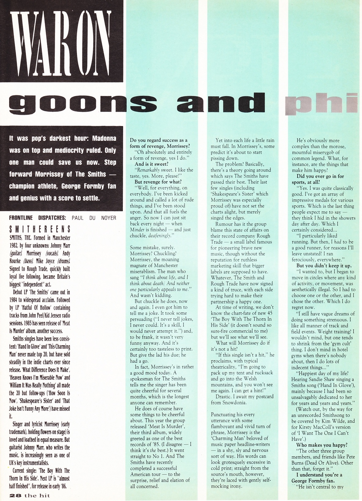 The Hit – October 1985 Posted byNick StuckenborgFebruary 15, 2020May 17, 2020Posted inThe HitTags:1985, interview, Smiths, Smiths 1985, The Hit Share this: Click to share on X (Opens in new window) X Click to share on Facebook (Opens in new window) Facebook Like Loading... Related Published by Nick Stuckenborg Archivist. Cinematographer. View more posts