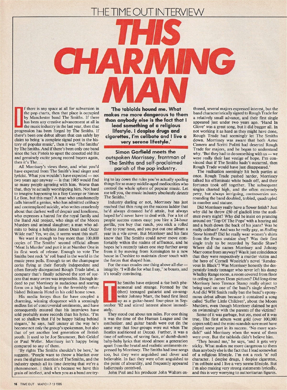 Time Out – 7 March 1985 Posted byNick StuckenborgFebruary 22, 2020May 17, 2020Posted inTime OutTags:1985, interview, Smiths, Smiths 1985, Time Out Share this: Share on X (Opens in new window) X Share on Facebook (Opens in new window) Facebook Like Loading... Related Published by Nick Stuckenborg Archivist. Cinematographer. View more posts