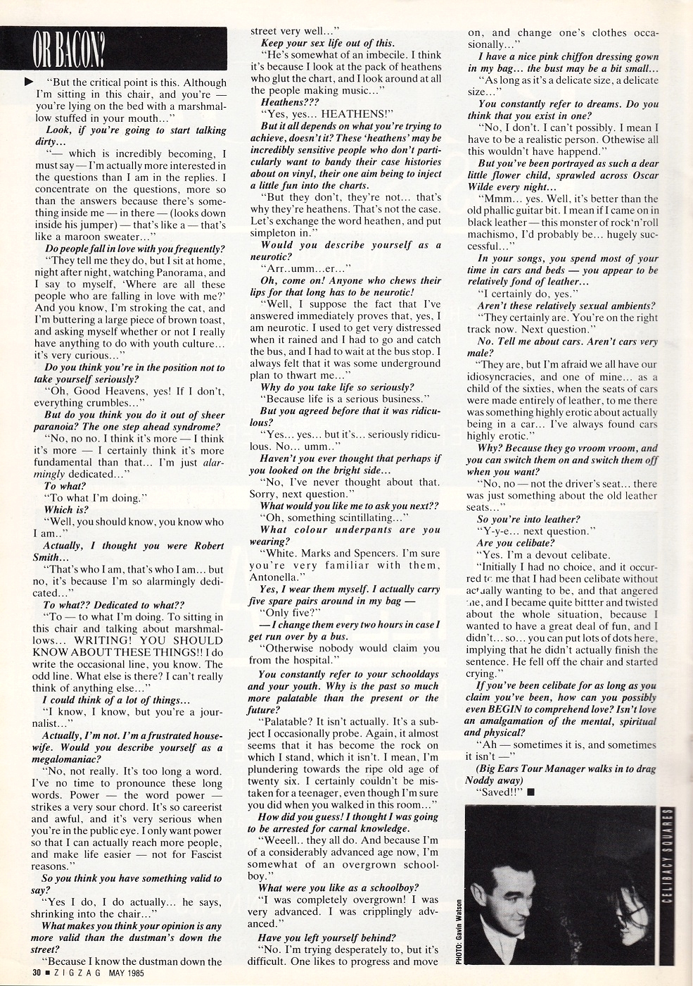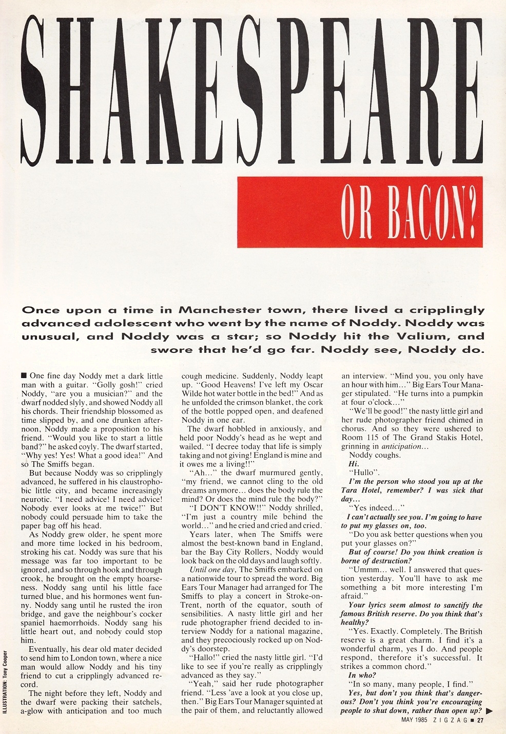 Zig Zag – May 1985 Posted byNick StuckenborgMarch 2, 2020May 17, 2020Posted inZig ZagTags:1985, interview, Smiths, Smiths 1985, Zig Zag Share this: Click to share on X (Opens in new window) X Click to share on Facebook (Opens in new window) Facebook Like Loading... Related Published by Nick Stuckenborg Archivist. Cinematographer. View more posts