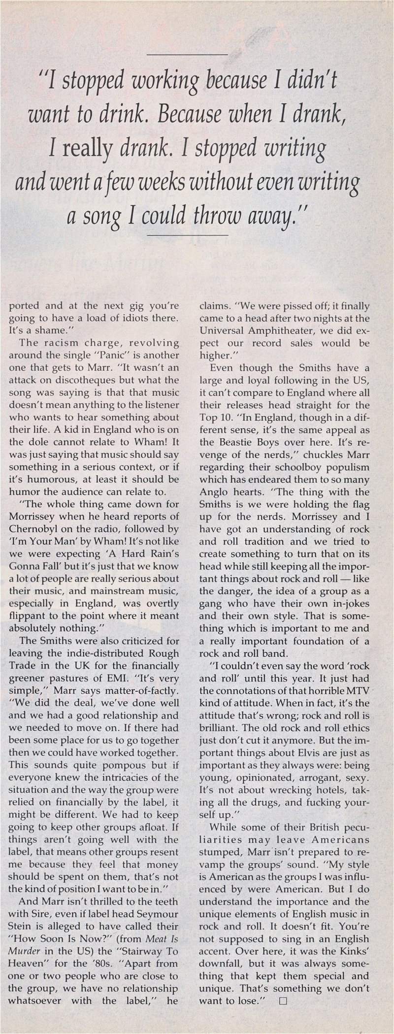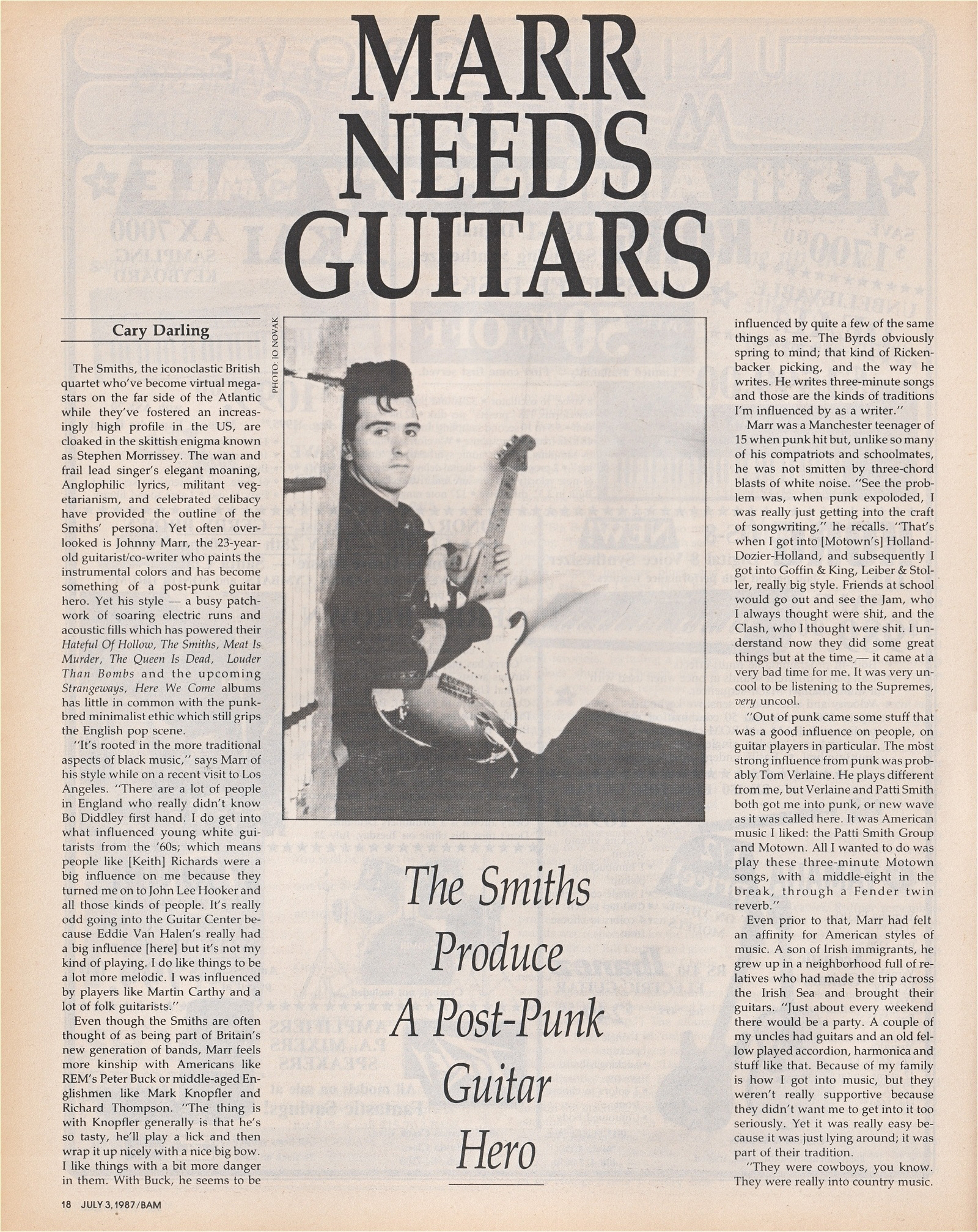 BAM – 3 July 1987 Posted byNick StuckenborgMarch 8, 2020May 17, 2020Posted inBAMTags:1987, BAM, interview, Smiths, Smiths 1987 Share this: Share on X (Opens in new window) X Share on Facebook (Opens in new window) Facebook Like Loading... Related Published by Nick Stuckenborg Archivist. Cinematographer. View more posts