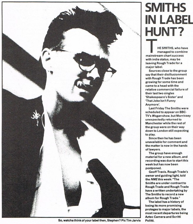 NME – Smiths In Label Hunt?, 1986 Posted byNick StuckenborgMarch 8, 2020March 8, 2020Posted inNews, NMETags:1986 News, News, NME, Smiths News Share this: Click to share on X (Opens in new window) X Click to share on Facebook (Opens in new window) Facebook Like Loading... Related Published by Nick Stuckenborg Archivist. Cinematographer. View more posts