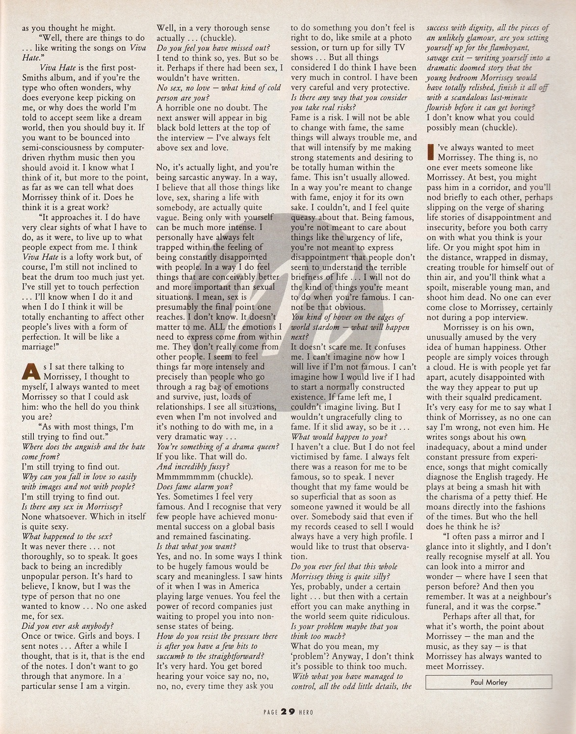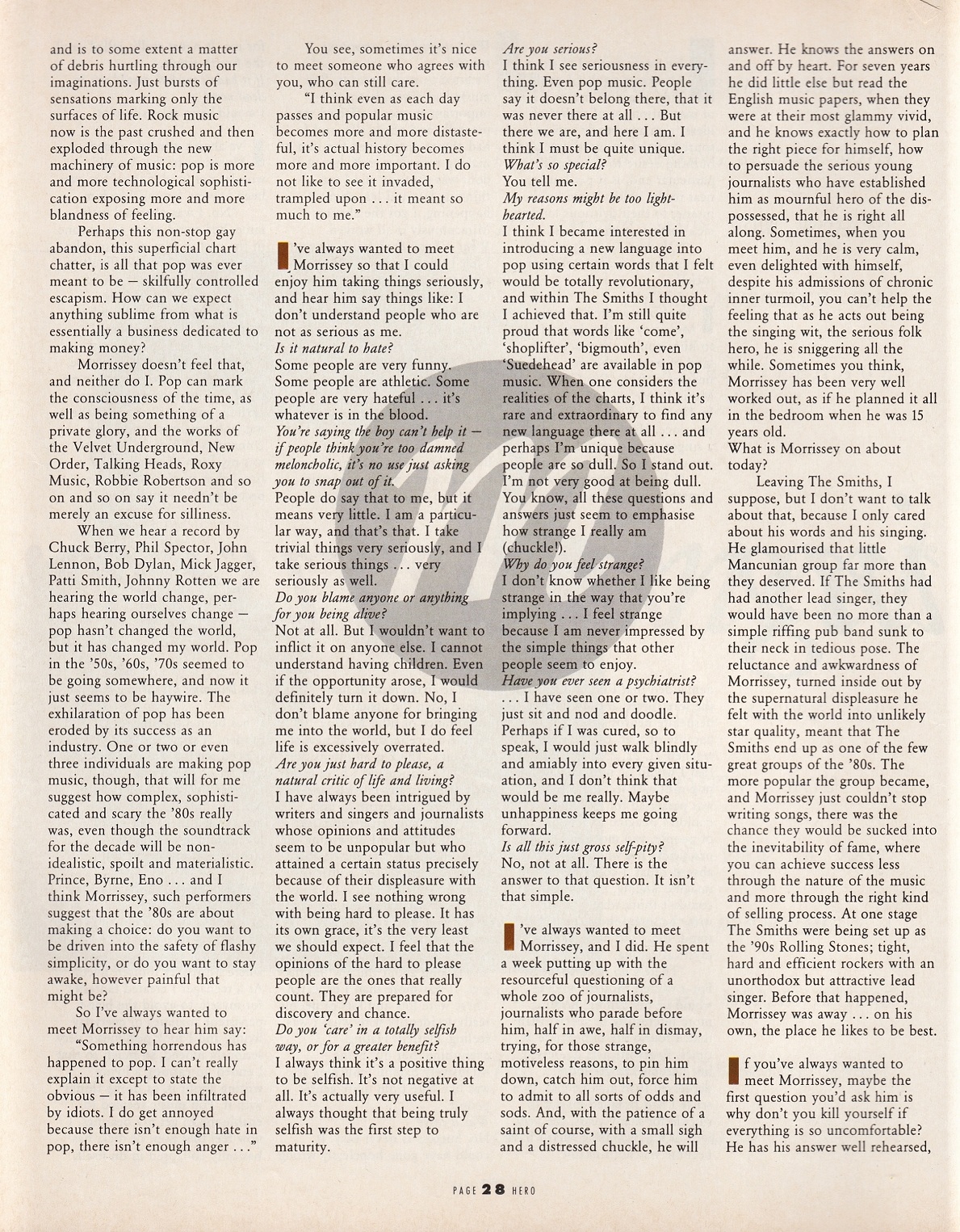 Hero – December 1988 Posted byNick StuckenborgMay 19, 2020Posted inHeroTags:1988, 1988 Morrissey, Hero, interview, Morrissey Share this: Share on X (Opens in new window) X Share on Facebook (Opens in new window) Facebook Like Loading... Related Published by Nick Stuckenborg Archivist. Cinematographer. View more posts