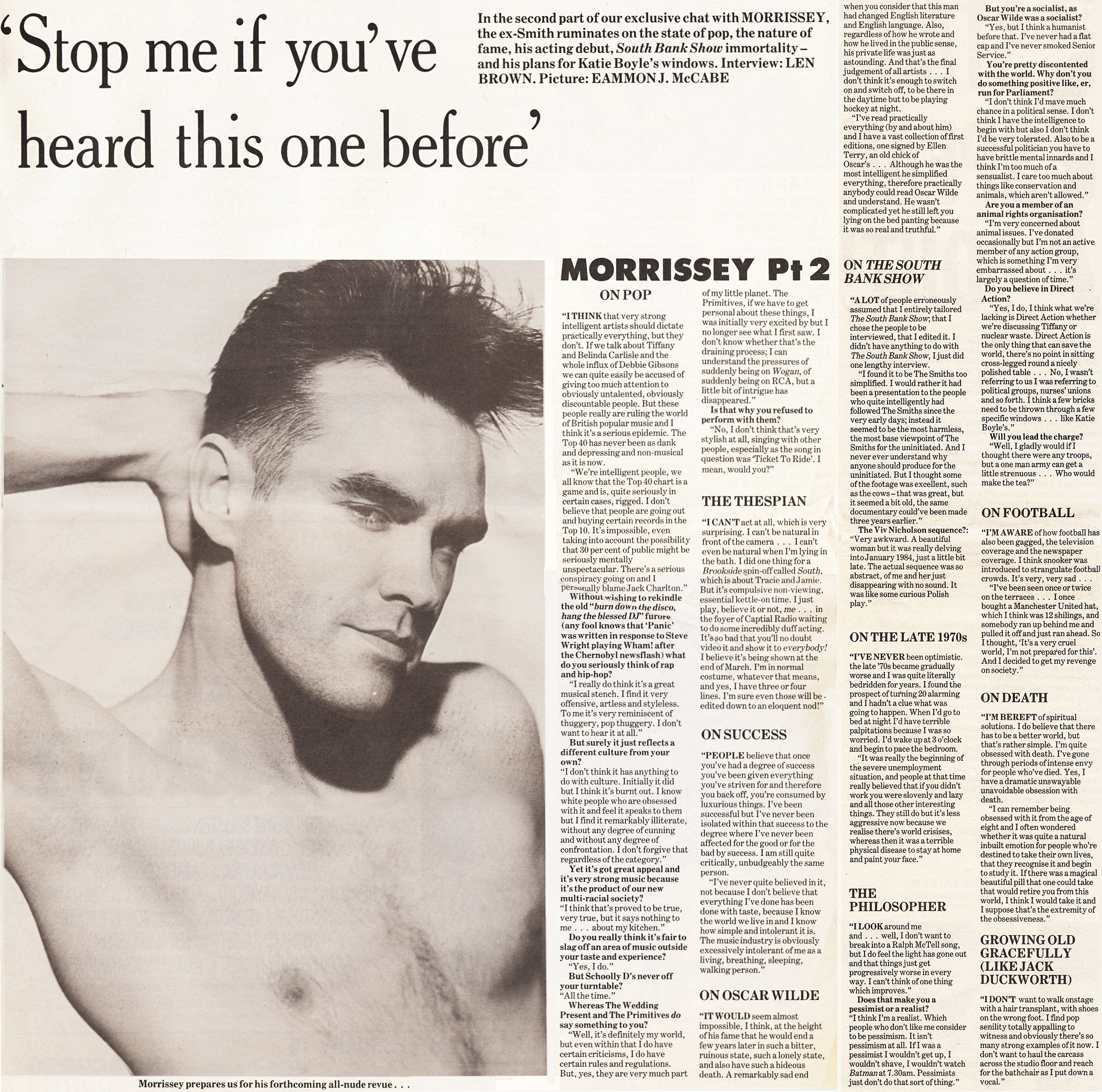 NME – 13-20 February 1988 Posted byNick StuckenborgMay 22, 2020Posted inNMETags:1988, 1988 Morrissey, interview, Morrissey, NME Share this: Share on X (Opens in new window) X Share on Facebook (Opens in new window) Facebook Like Loading... Related Published by Nick Stuckenborg Archivist. Cinematographer. View more posts