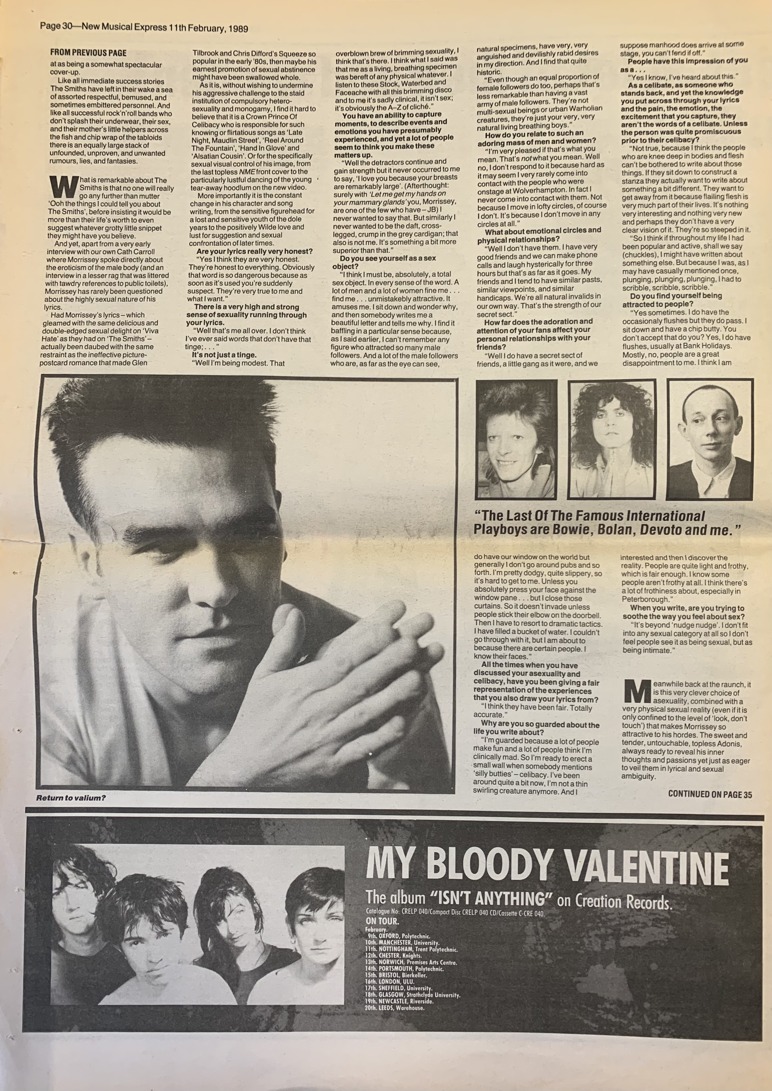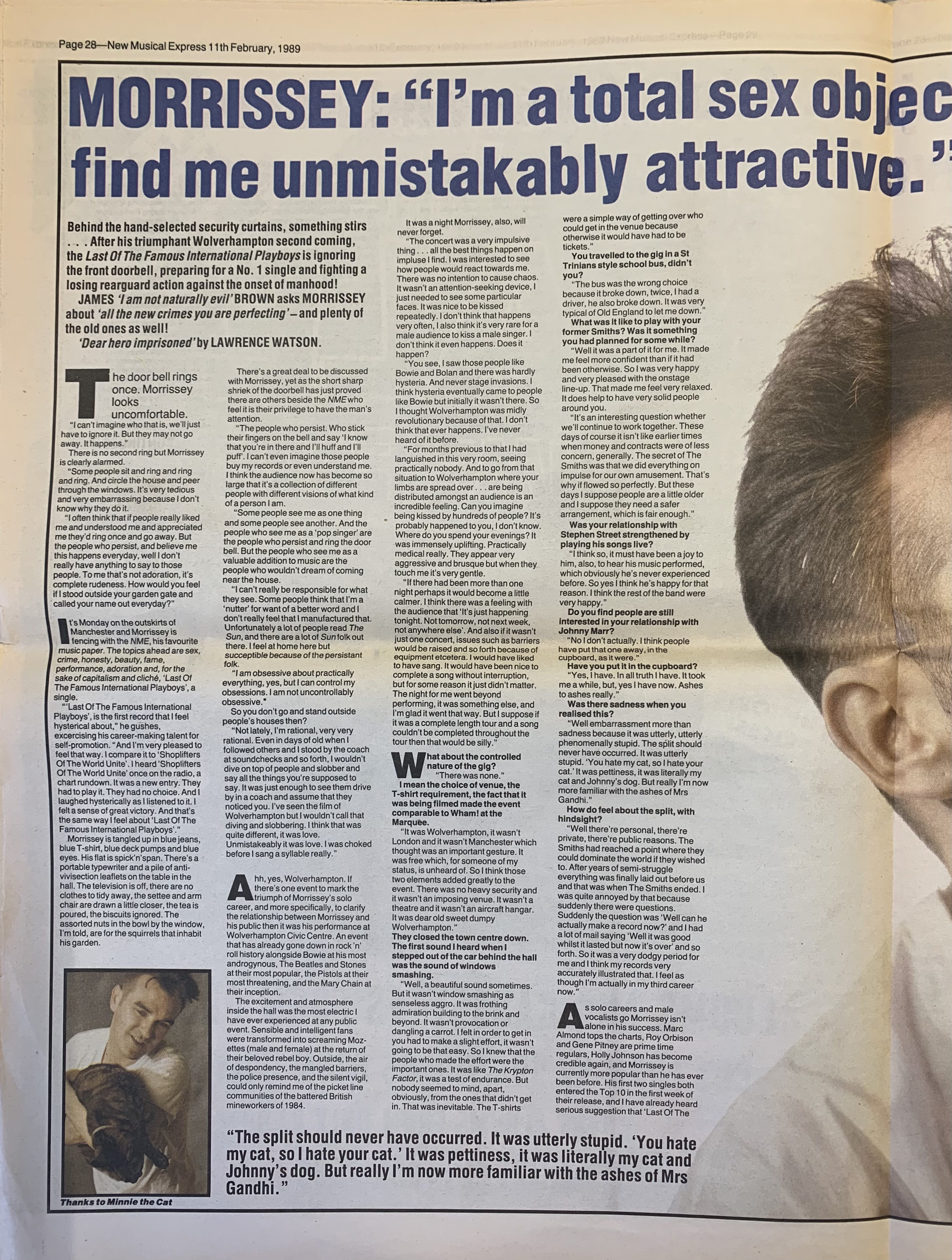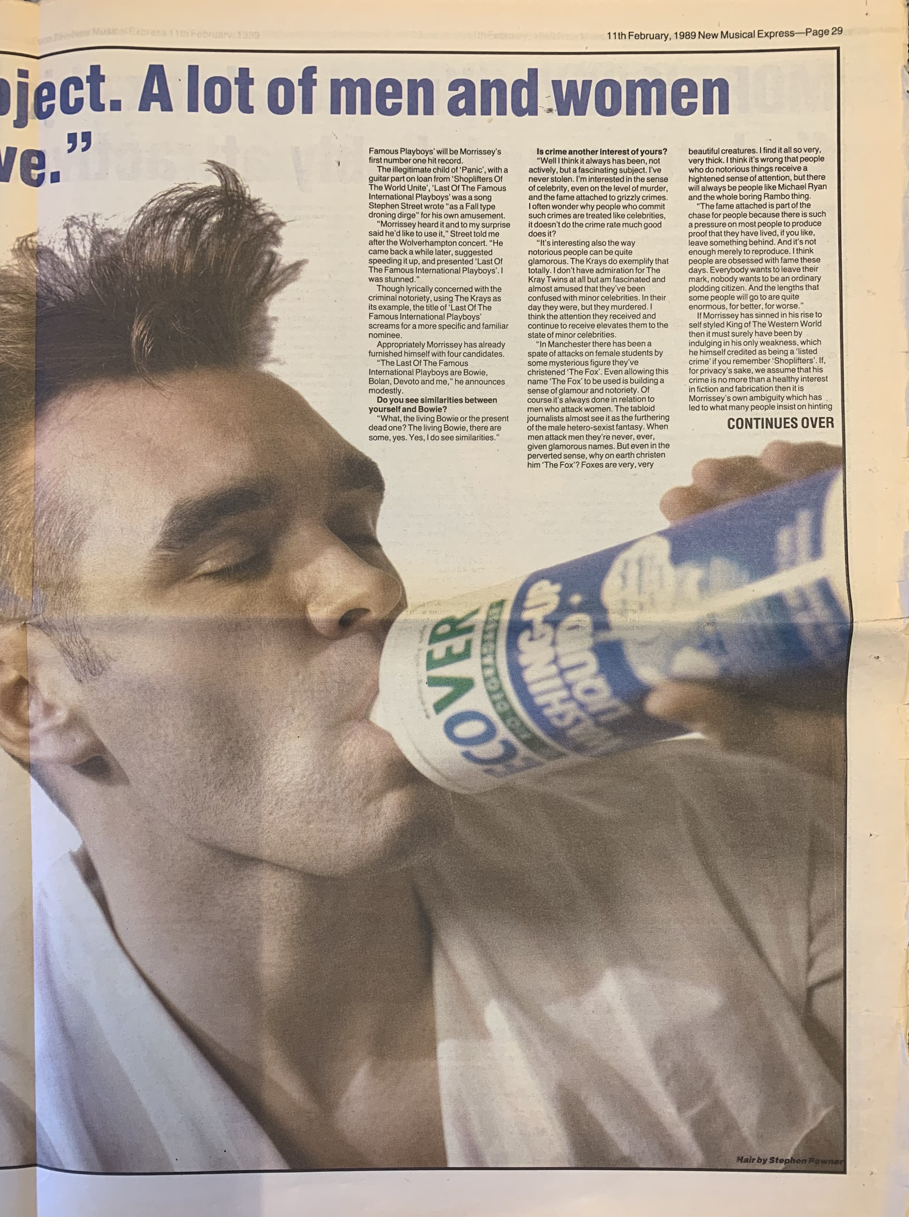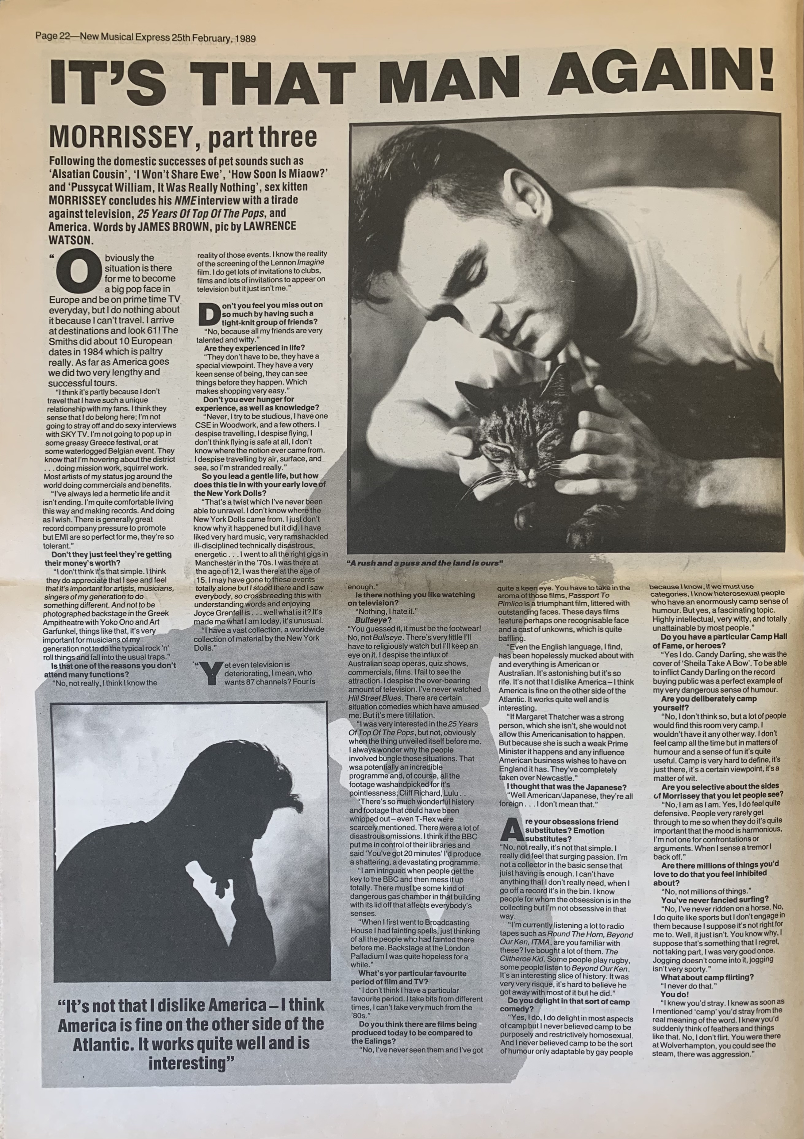 NME – 11-25 February 1989 Posted byNick StuckenborgSeptember 3, 2020May 28, 2022Posted inNMETags:1989, 1989 Morrissey, interview, Morrissey, NME Share this: Share on X (Opens in new window) X Share on Facebook (Opens in new window) Facebook Like Loading... Related Published by Nick Stuckenborg Archivist. Cinematographer. View more posts
