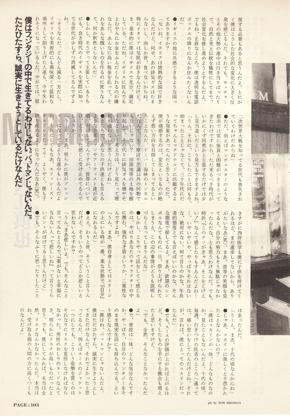 Rockin’ On – May 1989 Posted byNick StuckenborgSeptember 7, 2020Posted inRockin' OnTags:1989, 1989 Morrissey, interview, Japanese, Morrissey, Rockin' On Share this: Click to share on X (Opens in new window) X Click to share on Facebook (Opens in new window) Facebook Like Loading... Related Published by Nick Stuckenborg Archivist. Cinematographer. View more posts