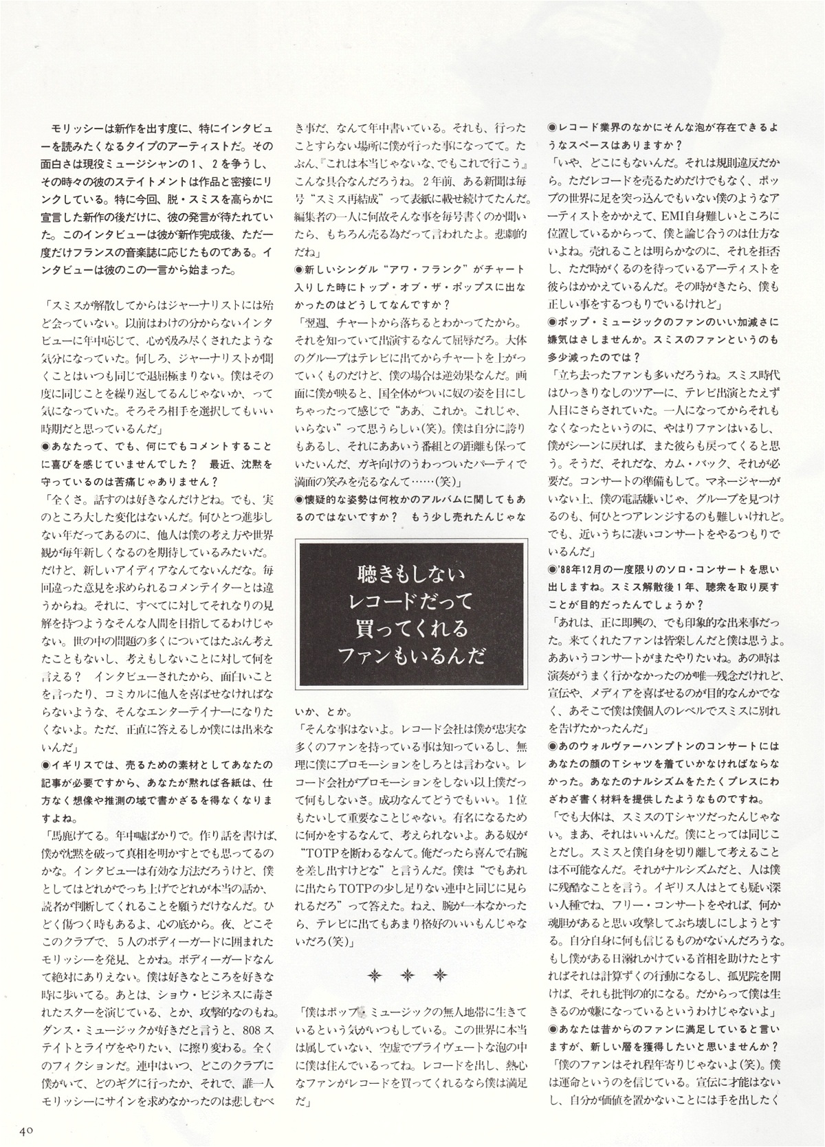 Crossbeat – June 1991 Posted byNick StuckenborgOctober 10, 2020Posted inCrossbeatTags:1991, 1991 Morrissey, Crossbeat, interview, Morrissey Share this: Share on X (Opens in new window) X Share on Facebook (Opens in new window) Facebook Like Loading... Related Published by Nick Stuckenborg Archivist. Cinematographer. View more posts