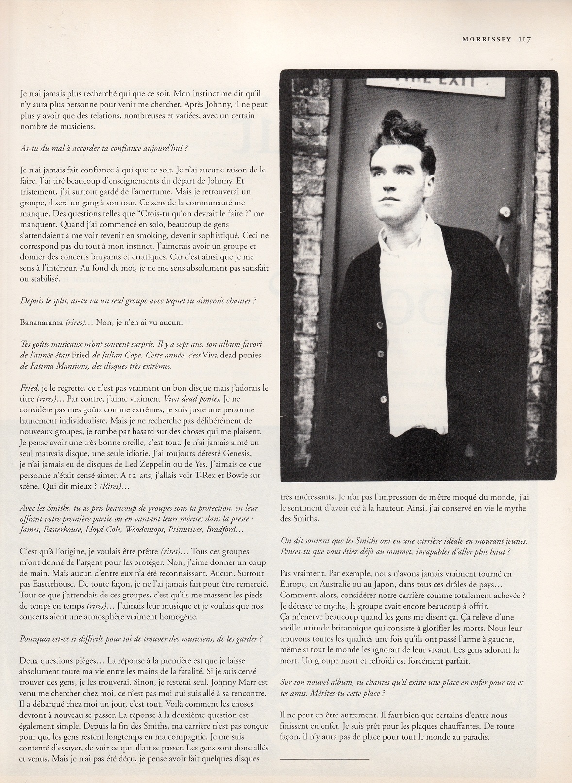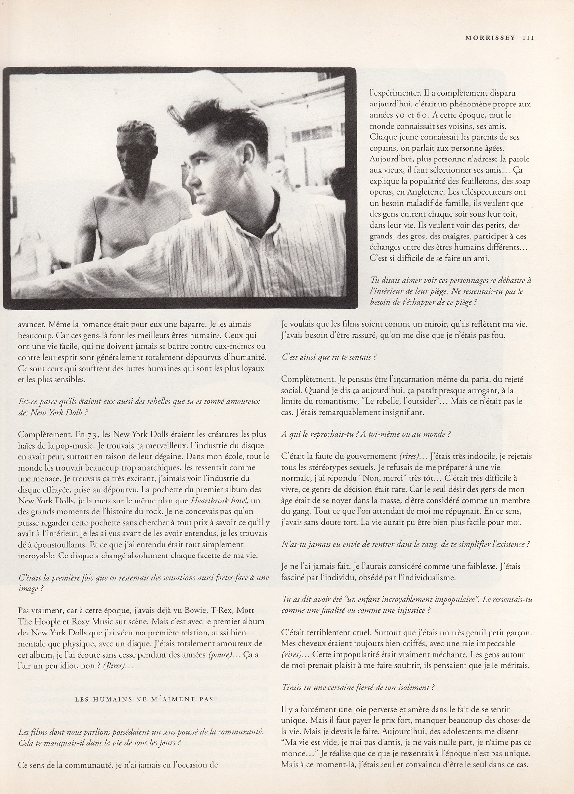 Les Inrockuptibles – March 1991 Posted byNick StuckenborgOctober 10, 2020October 10, 2020Posted inLes InrockuptiblesTags:1991, 1991 Morrissey, French, interview, Les Inrockuptibles, Morrissey Share this: Share on X (Opens in new window) X Share on Facebook (Opens in new window) Facebook Like Loading... Related Published by Nick Stuckenborg Archivist. Cinematographer. View more posts