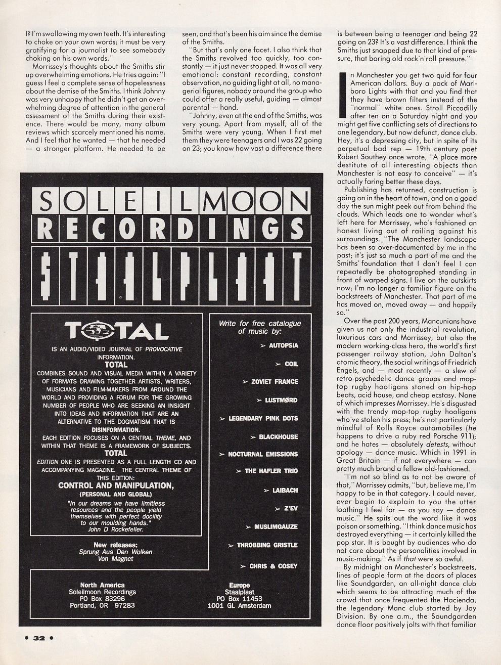 Option – May 1991 Posted byNick StuckenborgOctober 10, 2020Posted inOptionTags:1991, 1991 Morrissey, interview, Morrissey, Option Share this: Share on X (Opens in new window) X Share on Facebook (Opens in new window) Facebook Like Loading... Related Published by Nick Stuckenborg Archivist. Cinematographer. View more posts