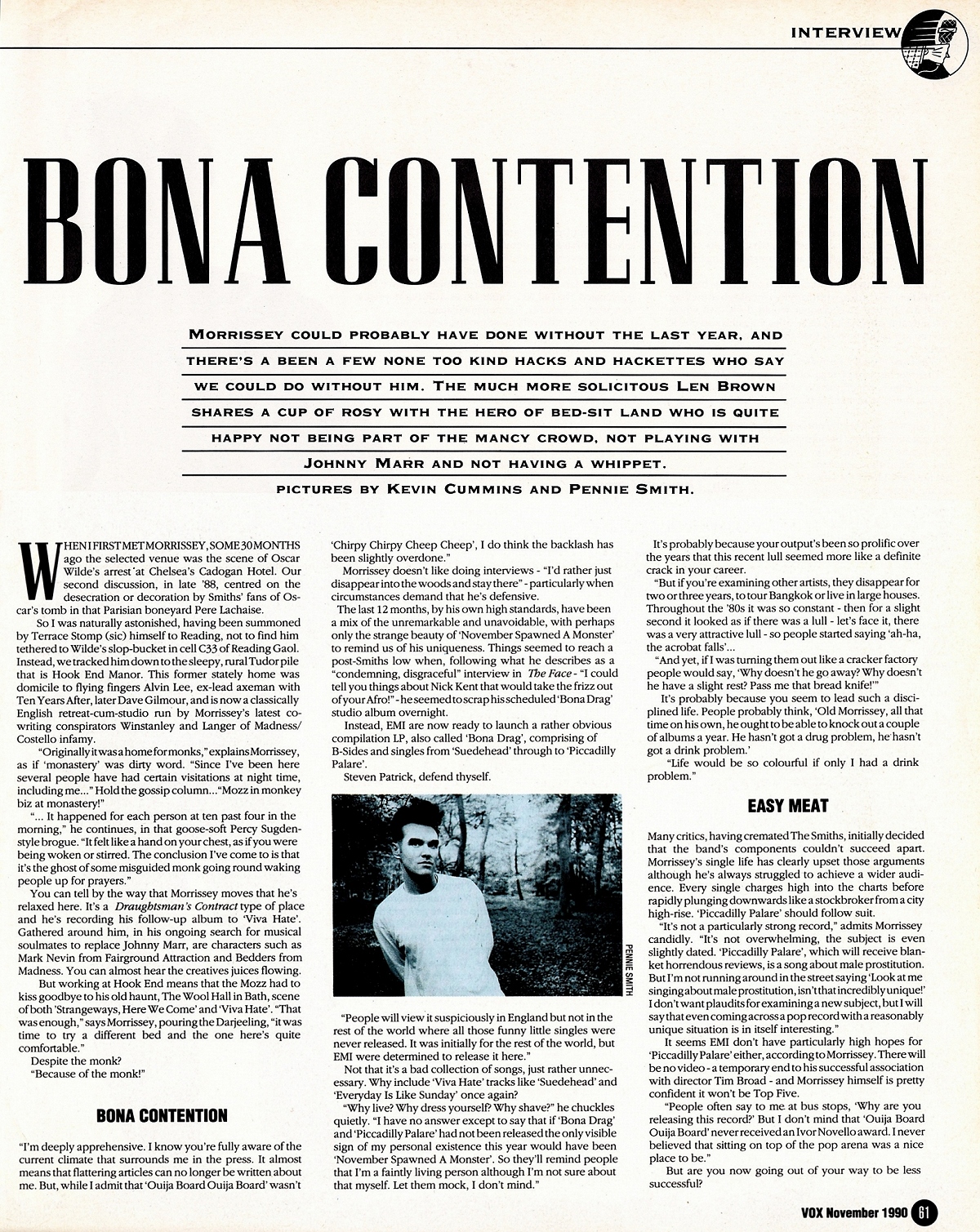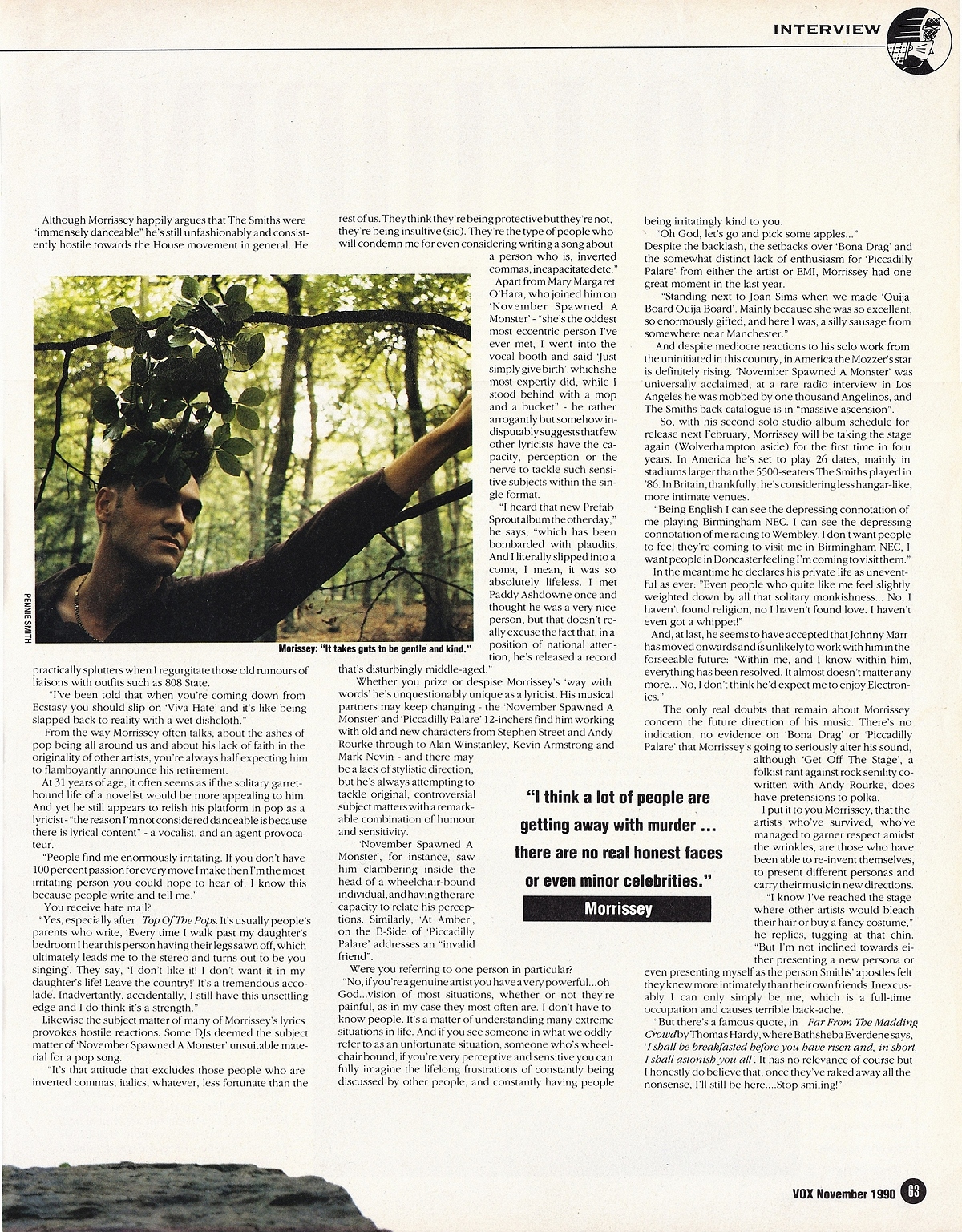 Vox – November 1990 Posted byNick StuckenborgOctober 10, 2020Posted inVoxTags:1990, 1990 Morrissey, interview, Morrissey, Vox Share this: Share on X (Opens in new window) X Share on Facebook (Opens in new window) Facebook Like Loading... Related Published by Nick Stuckenborg Archivist. Cinematographer. View more posts