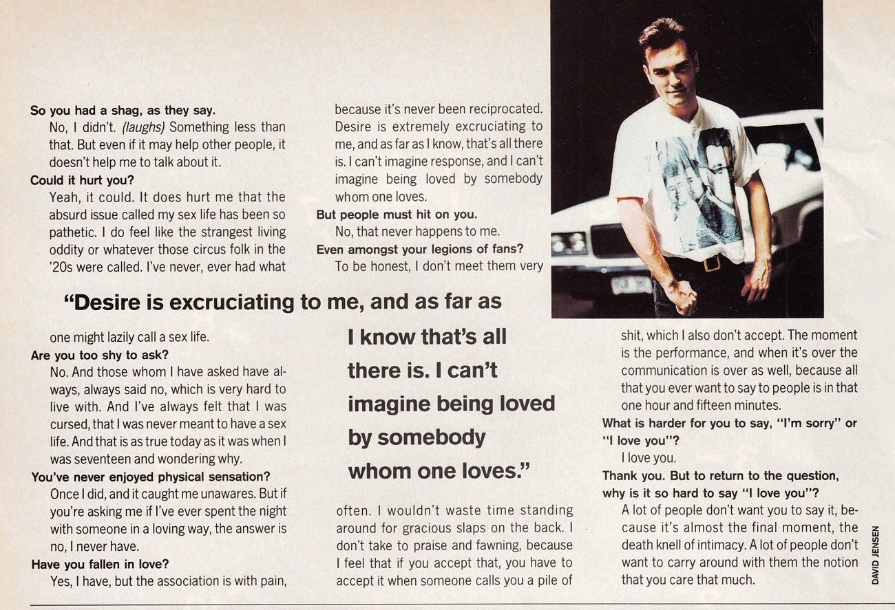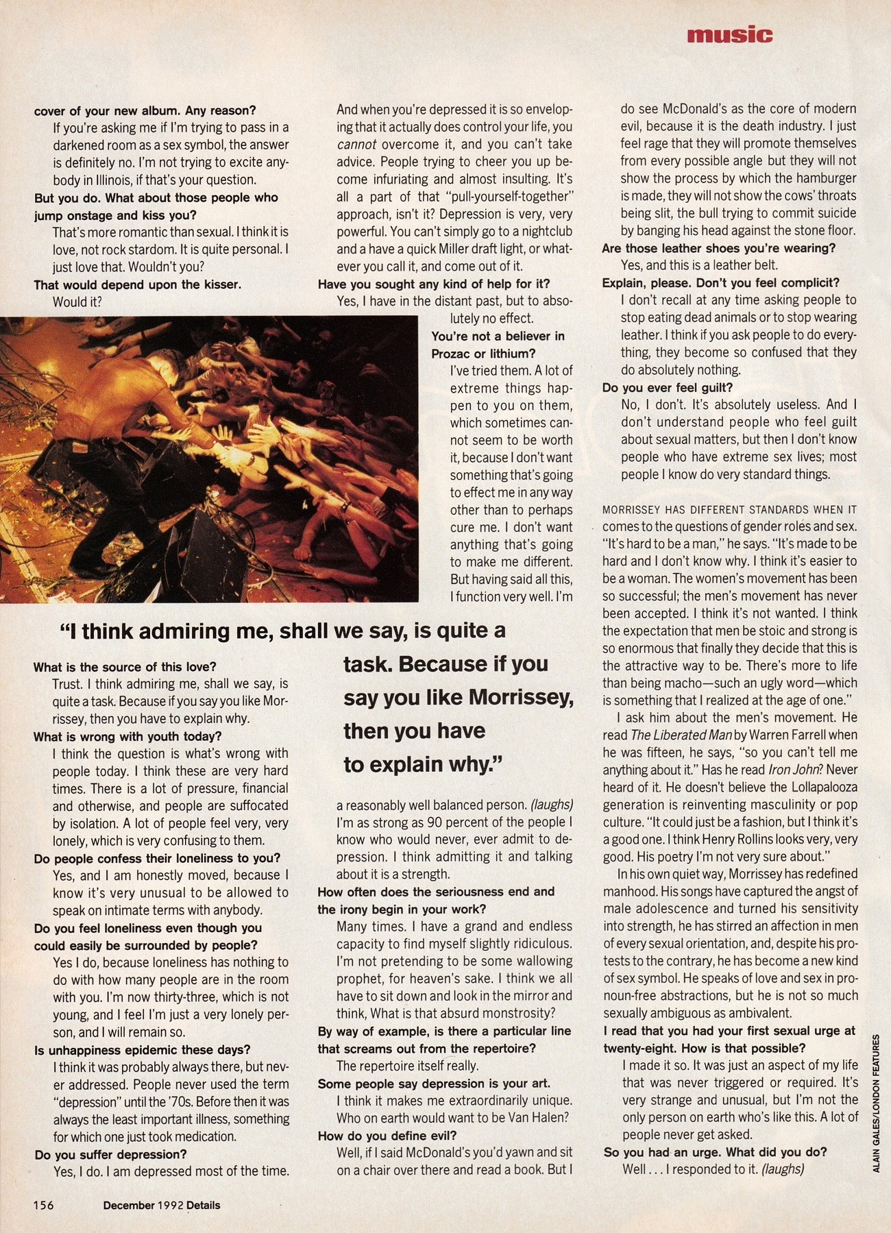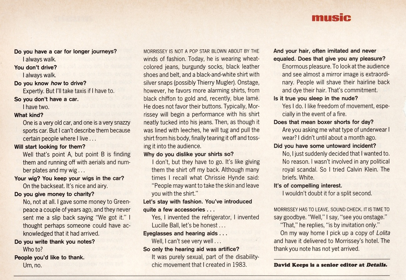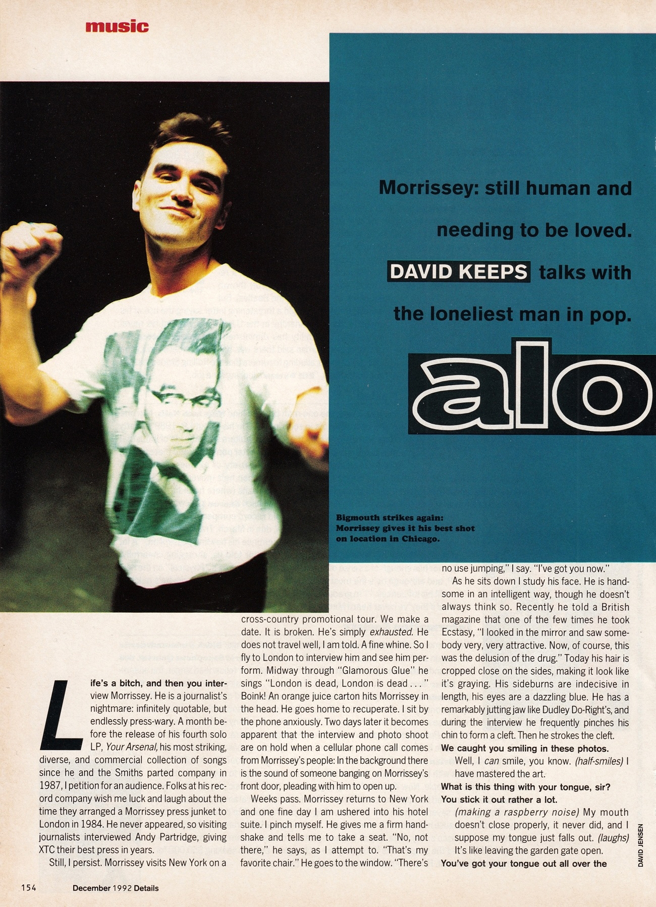 Details – December 1992 Posted byNick StuckenborgNovember 26, 2020Posted inDetailsTags:1992, 1992 Morrissey, Details, interview, Morrissey Share this: Share on X (Opens in new window) X Share on Facebook (Opens in new window) Facebook Like Loading... Related Published by Nick Stuckenborg Archivist. Cinematographer. View more posts