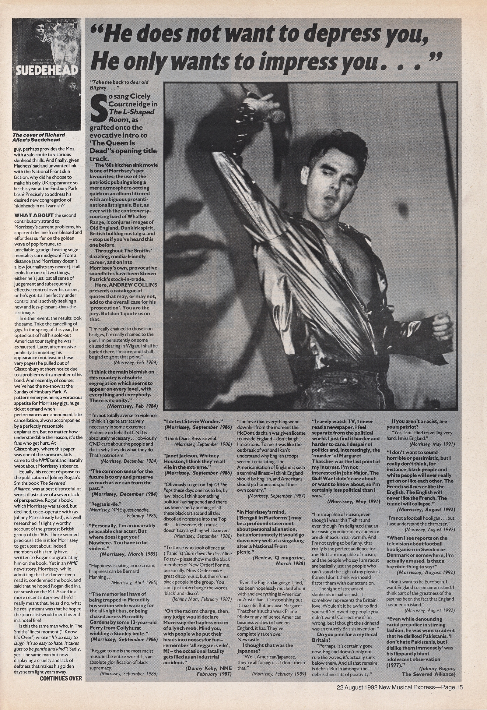 NME – 22 August 1992 Posted byNick StuckenborgNovember 26, 2020Posted inNMETags:1992, 1992 Morrissey, interview, Morrissey, NME Share this: Click to share on X (Opens in new window) X Click to share on Facebook (Opens in new window) Facebook Like Loading... Related Published by Nick Stuckenborg Archivist. Cinematographer. View more posts