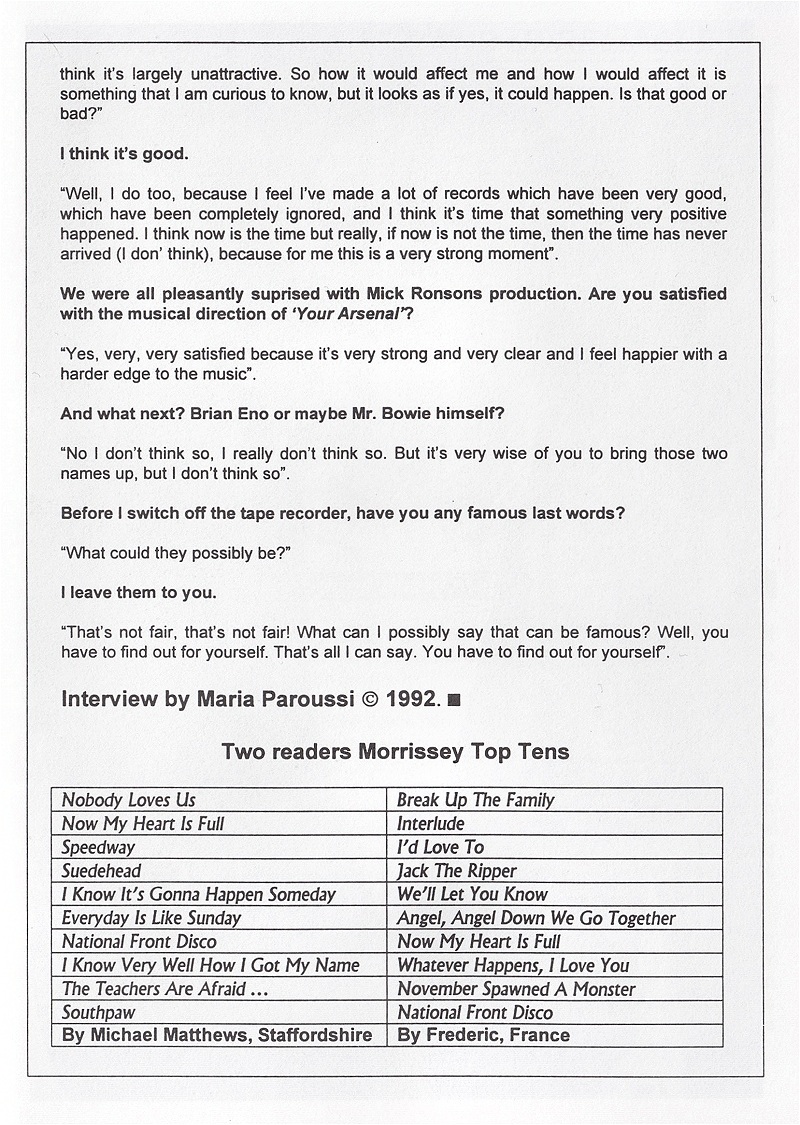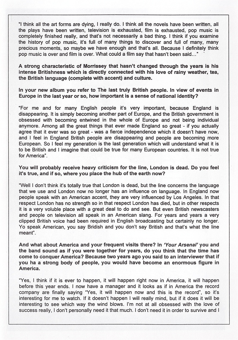 A Chance to Shine Issue #12 – April 1997 Posted byNick StuckenborgJanuary 23, 2021Posted inA Chance to ShineTags:1997, 1997 Morrissey, A Chance to Shine, interview, Morrissey Share this: Share on X (Opens in new window) X Share on Facebook (Opens in new window) Facebook Like Loading... Related Published by Nick Stuckenborg Archivist. Cinematographer. View more posts