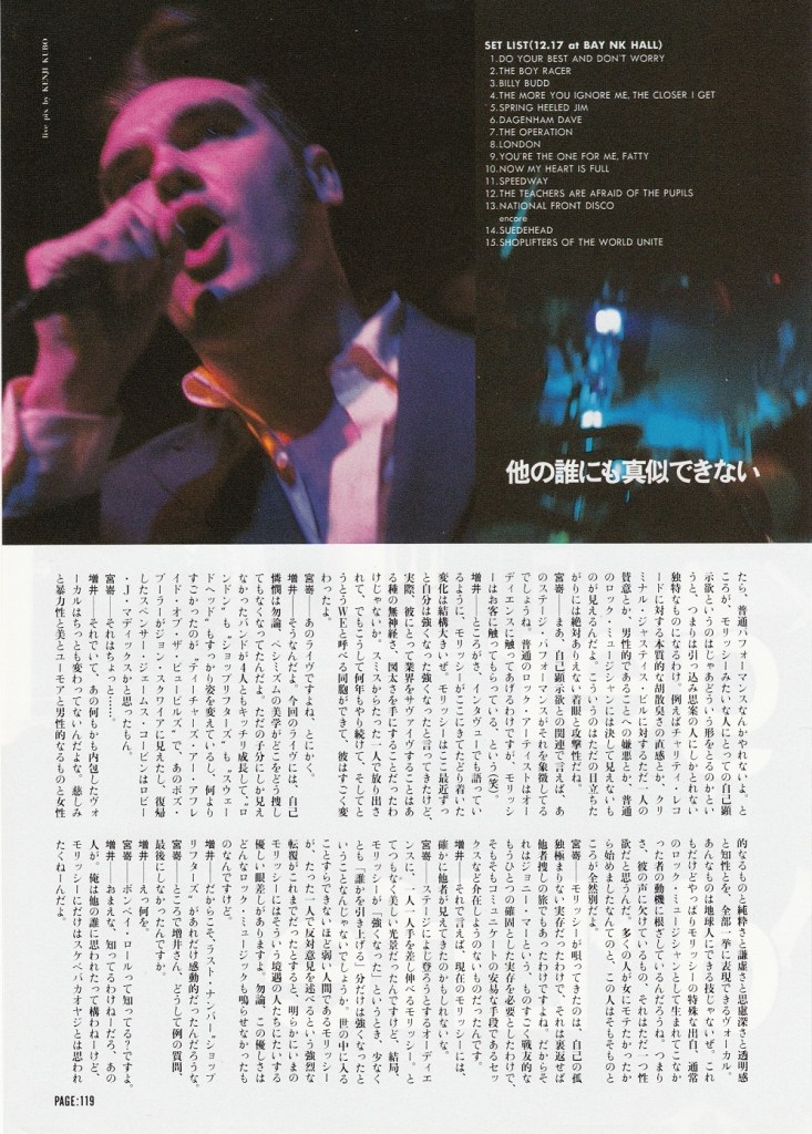 Rockin’ On – March 1996 Posted byNick StuckenborgJanuary 23, 2021Posted inRockin' OnTags:1996, 1996 Morrissey, interview, Japanese, Morrissey, Rockin' On Share this: Share on X (Opens in new window) X Share on Facebook (Opens in new window) Facebook Like Loading... Related Published by Nick Stuckenborg Archivist. Cinematographer. View more posts