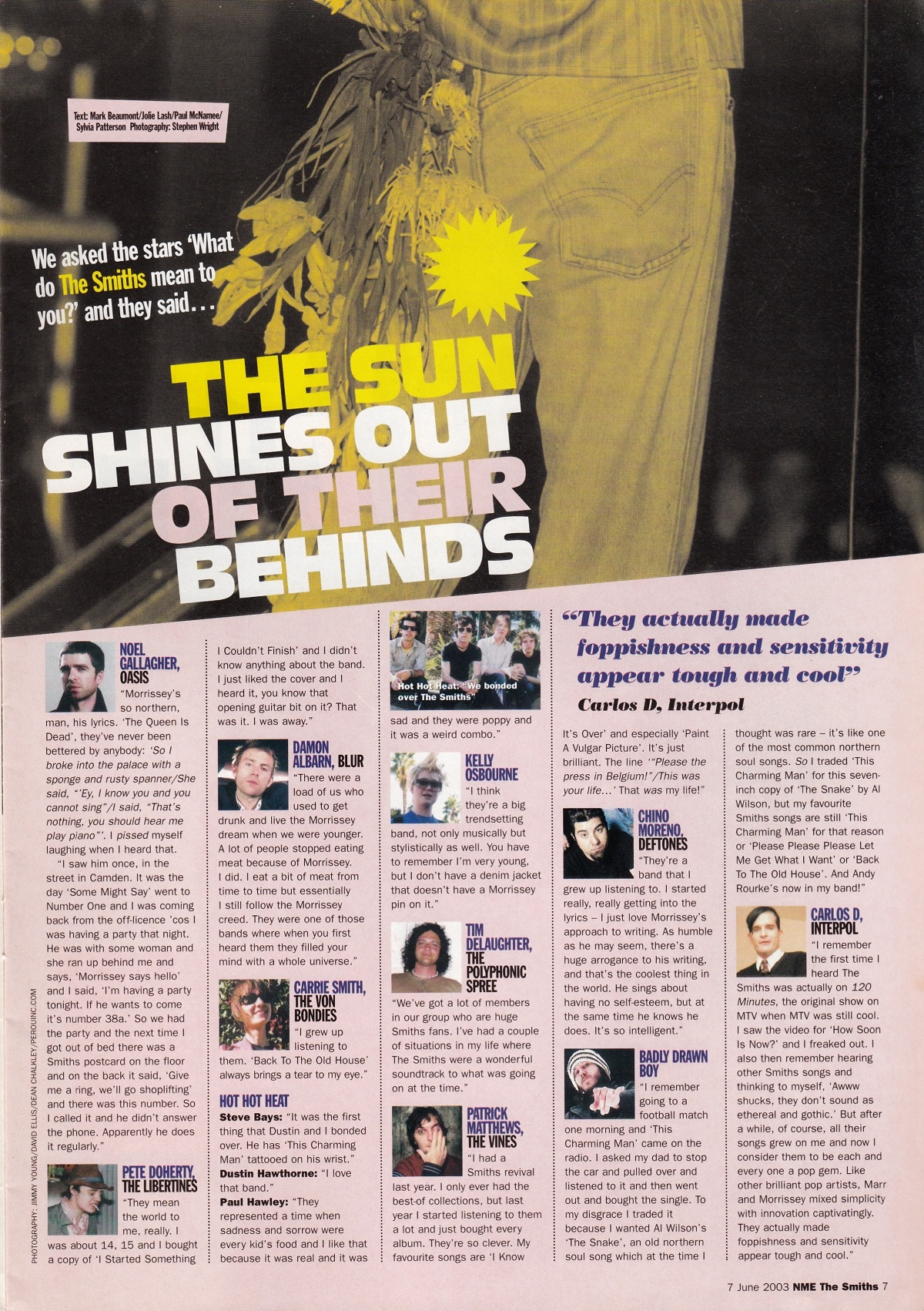NME – 7 June 2003 Posted byNick StuckenborgJuly 6, 2021Posted inNMETags:2003, interview, NME, Smiths, Smiths 2003 Share this: Click to share on X (Opens in new window) X Click to share on Facebook (Opens in new window) Facebook Like Loading... Related Published by Nick Stuckenborg Archivist. Cinematographer. View more posts