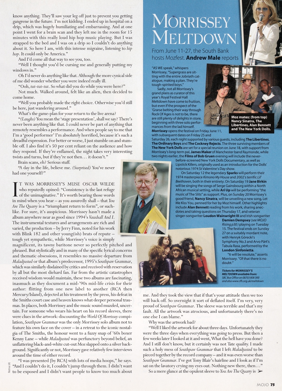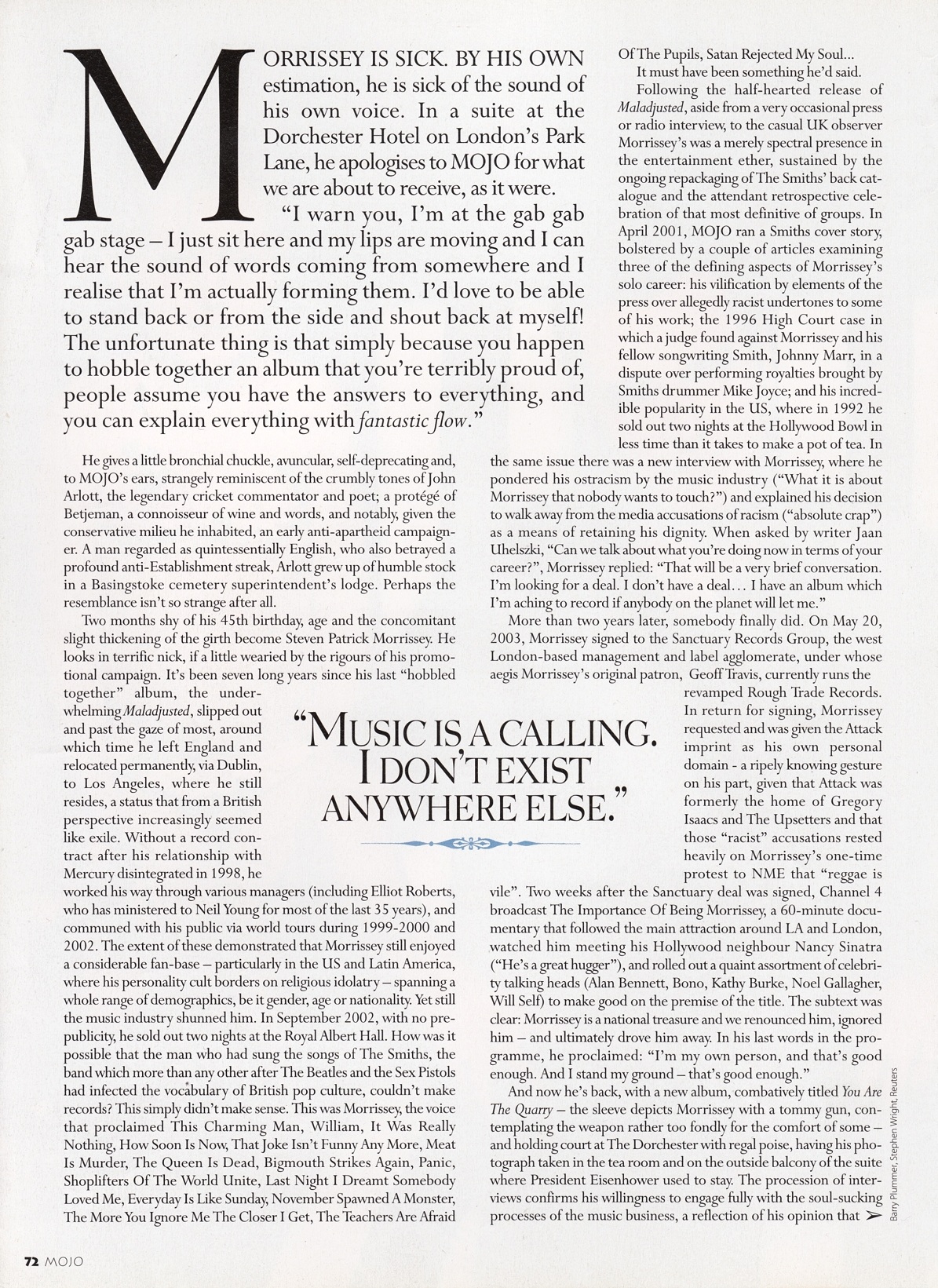 Mojo – June 2004 Posted byNick StuckenborgJuly 7, 2021Posted inMojoTags:2004, 2004 Morrissey, interview, Mojo, Morrissey Share this: Share on X (Opens in new window) X Share on Facebook (Opens in new window) Facebook Like Loading... Related Published by Nick Stuckenborg Archivist. Cinematographer. View more posts