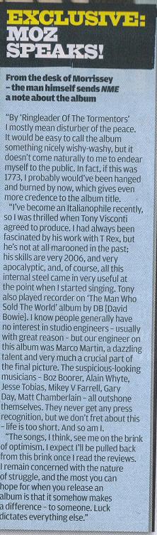 NME – 31 December 2005 Posted byNick StuckenborgSeptember 11, 2021Posted inNMETags:2005, 2005 Morrissey, interview, Morrissey, NME Share this: Click to share on X (Opens in new window) X Click to share on Facebook (Opens in new window) Facebook Like Loading... Related Published by Nick Stuckenborg Archivist. Cinematographer. View more posts
