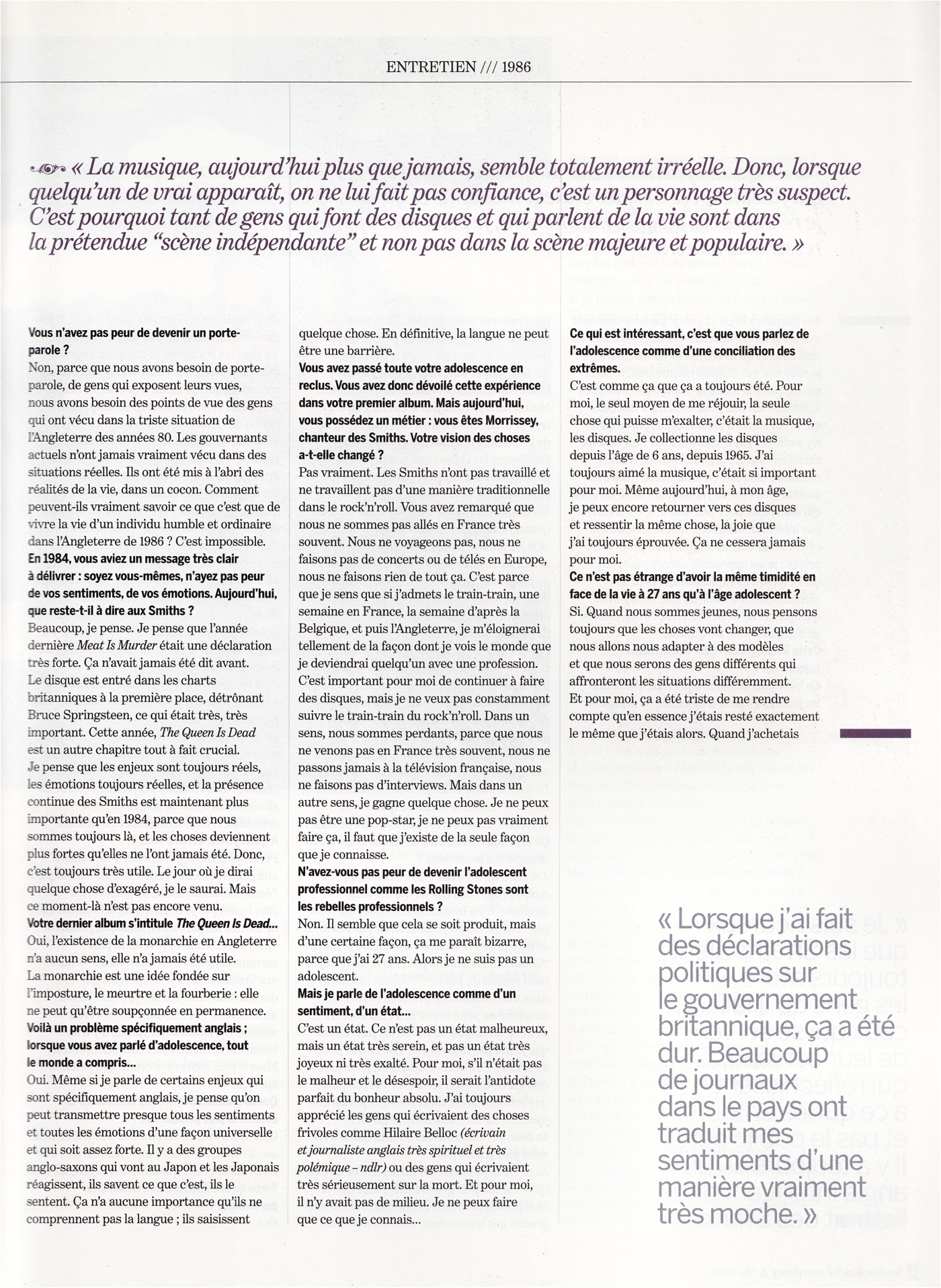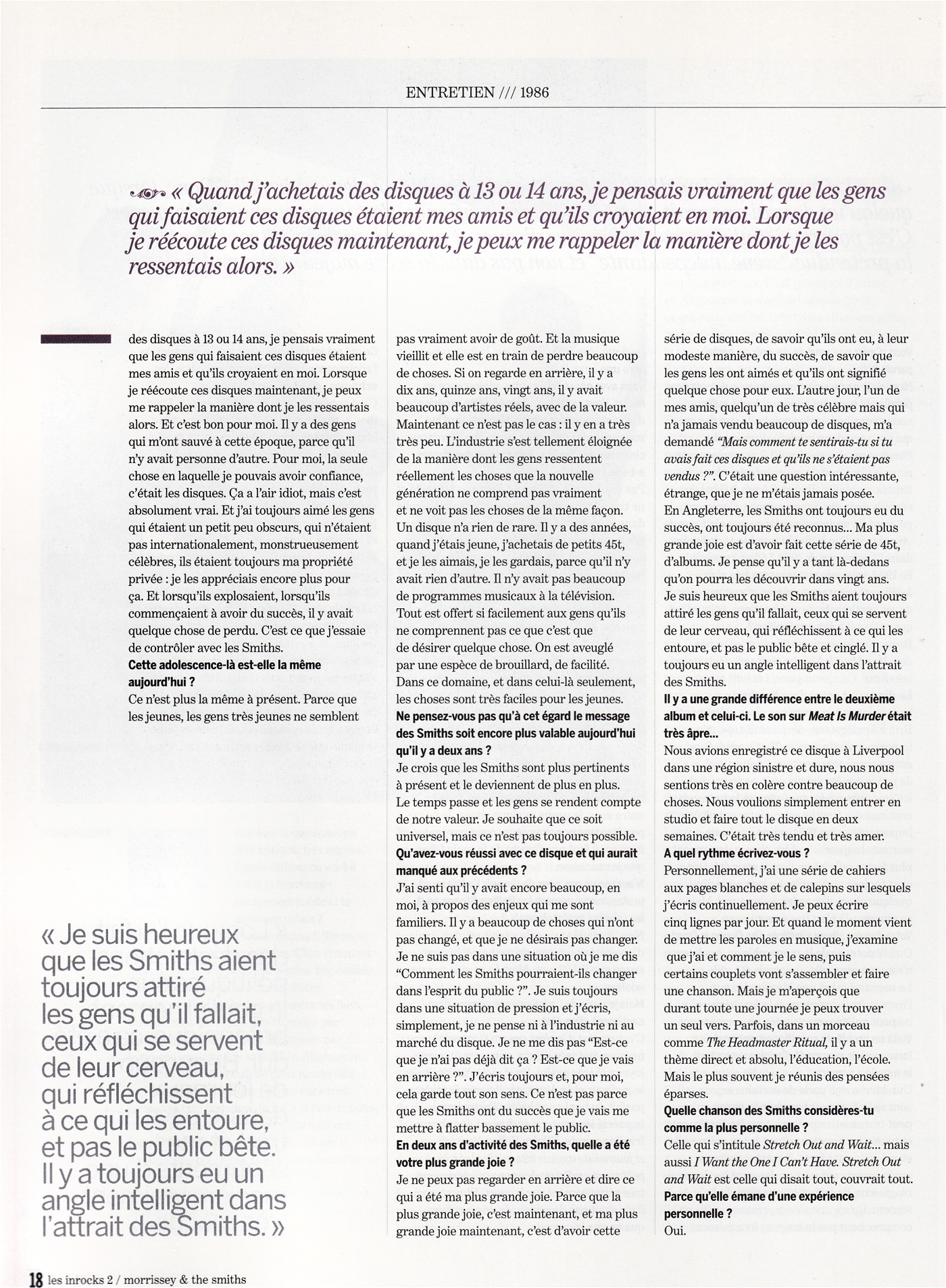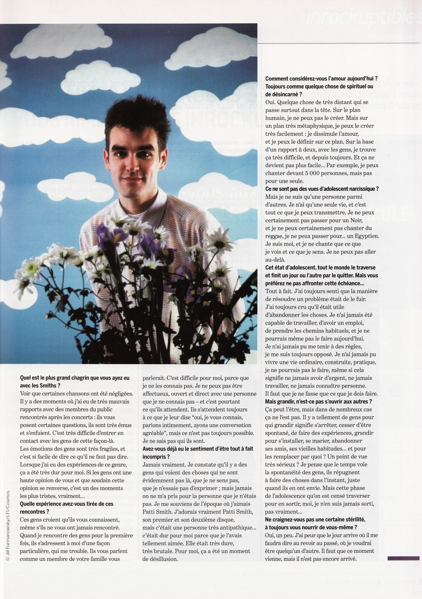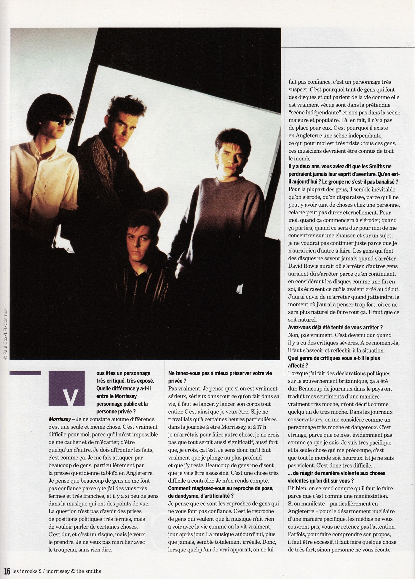 Les Inrocks 2 – April 2006 Posted byNick StuckenborgOctober 31, 2021October 31, 2021Posted inLes InrockuptiblesTags:2006, 2006 Morrissey, Les Inrockuptibles, Morrissey October 1986 Interview October 1987 Interview Share this: Click to share on X (Opens in new window) X Click to share on Facebook (Opens in new window) Facebook Like Loading... Related Published by Nick Stuckenborg Archivist. Cinematographer. View more posts