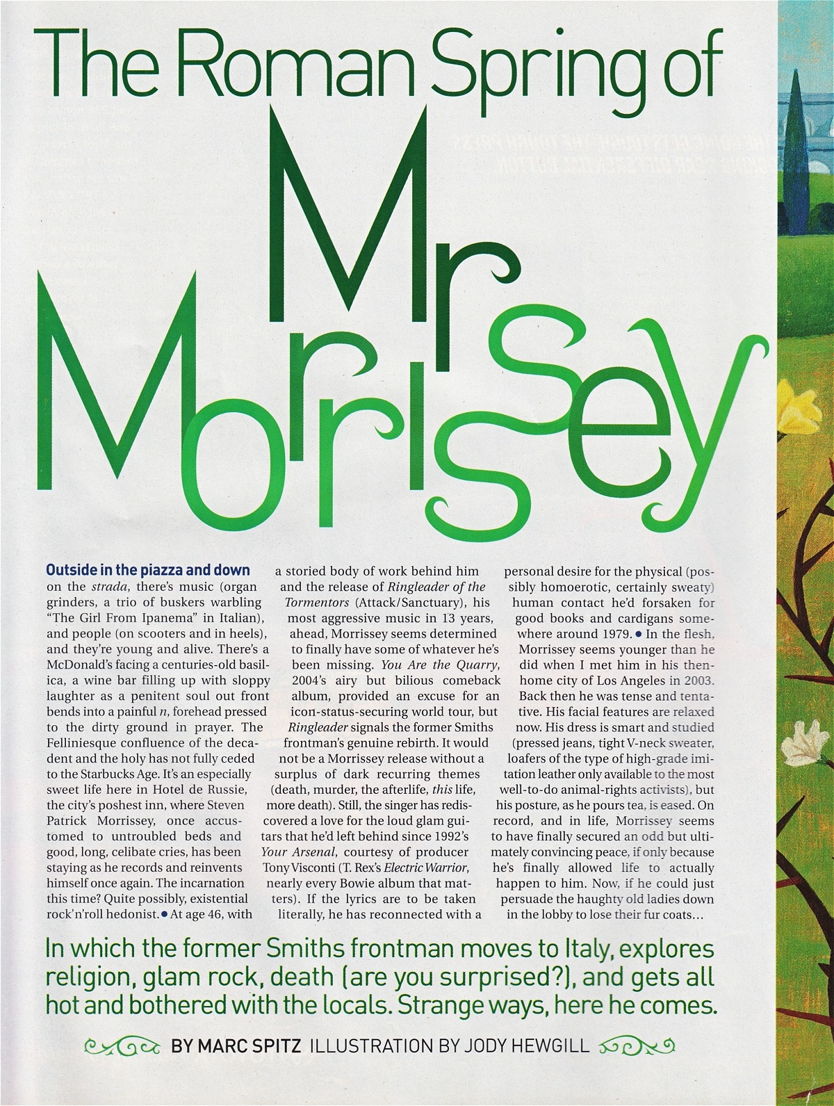 Spin – April 2006 Posted byNick StuckenborgOctober 31, 2021Posted inSpinTags:2006, 2006 Morrissey, interview, Morrissey, Spin Share this: Click to share on X (Opens in new window) X Click to share on Facebook (Opens in new window) Facebook Like Loading... Related Published by Nick Stuckenborg Archivist. Cinematographer. View more posts