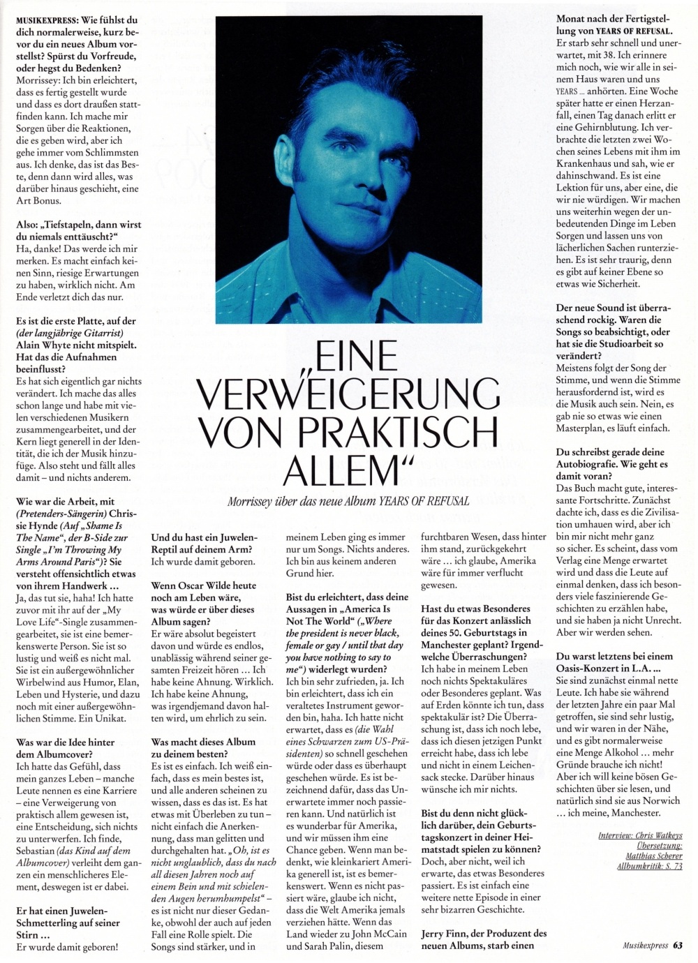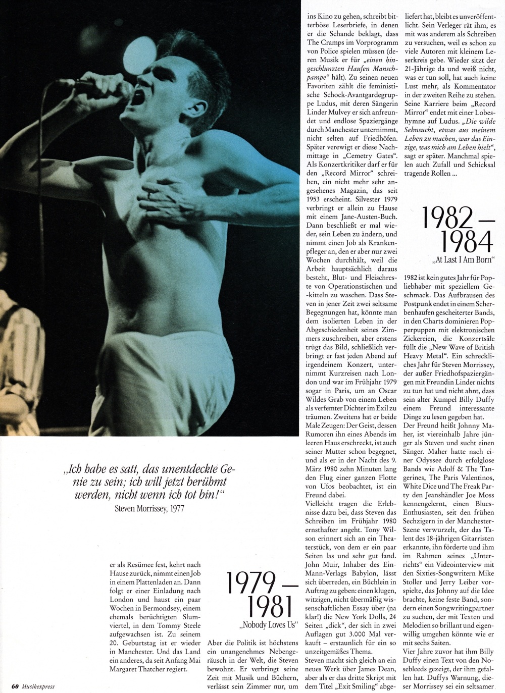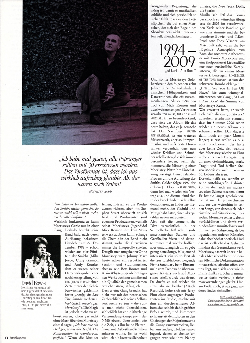 Musikexpress – March 2009 Posted byNick StuckenborgApril 16, 2022April 17, 2022Posted inMusik ExpressTags:2009, 2009 Morrissey, Deutsch, German, interview, Morrissey, Musik Express, Smiths, Smiths 2009 Share this: Click to share on X (Opens in new window) X Click to share on Facebook (Opens in new window) Facebook Like Loading... Related Published by Nick Stuckenborg Archivist. Cinematographer. View more posts