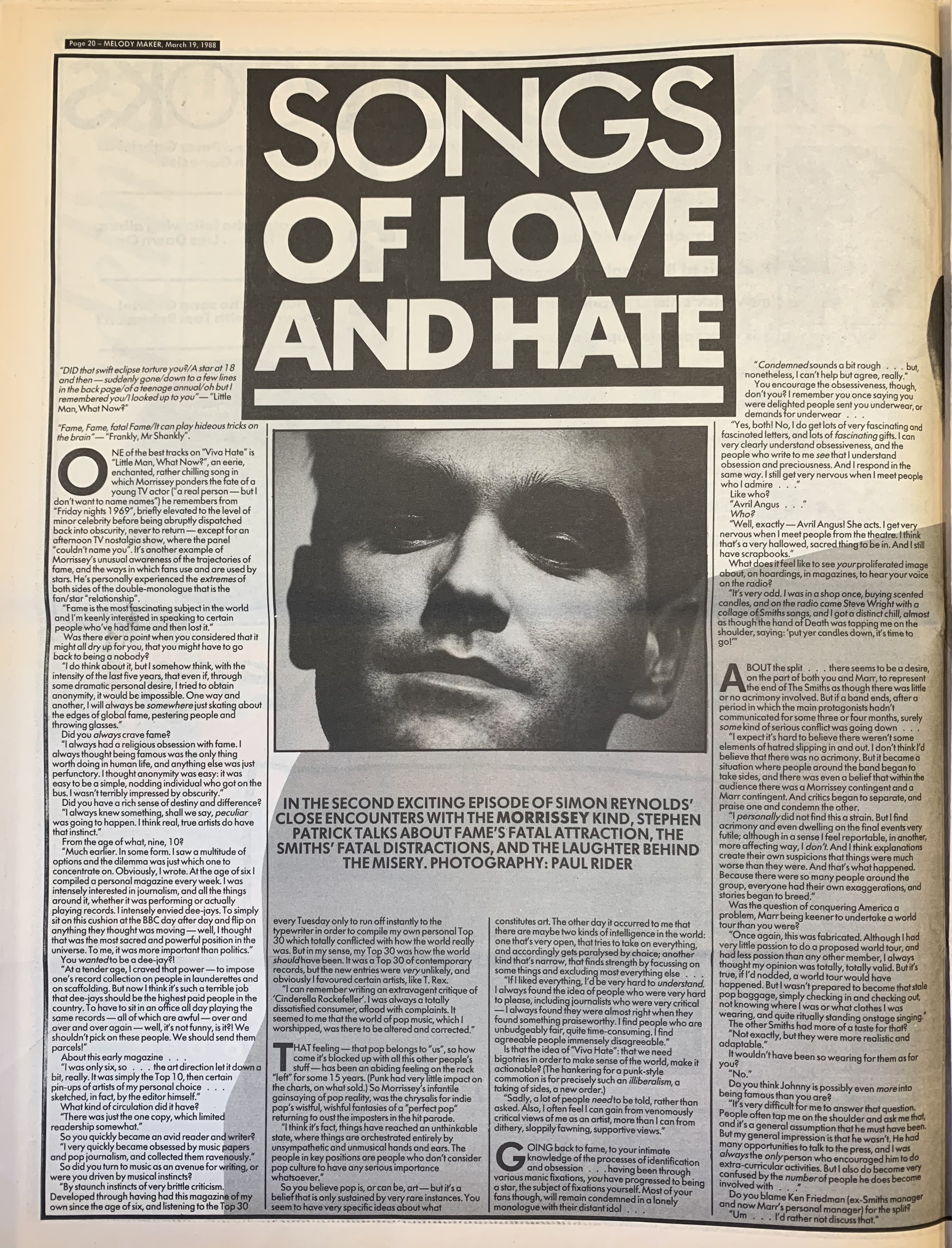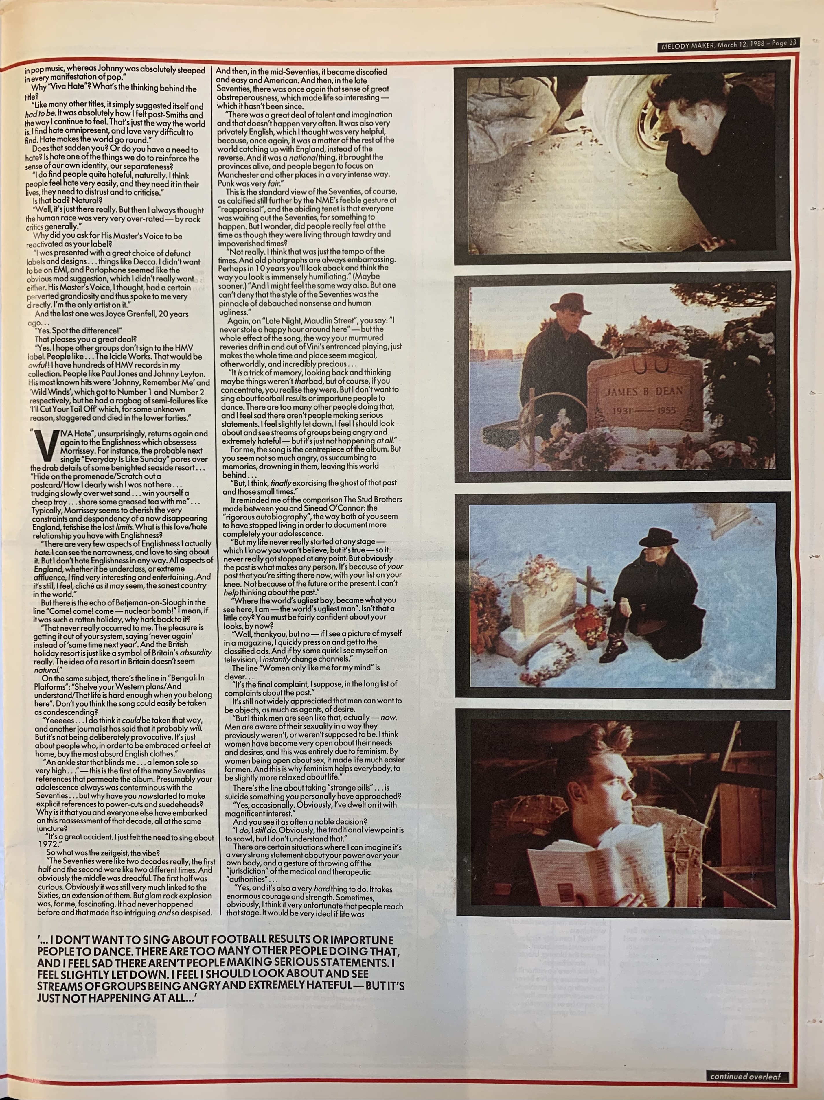 Melody Maker – 12-19 March 1988 Posted byNick StuckenborgMay 28, 2022September 24, 2023Posted inMelody MakerTags:1988, 1988 Morrissey, interview, Melody Maker, Morrissey Share this: Share on X (Opens in new window) X Share on Facebook (Opens in new window) Facebook Like Loading... Related Published by Nick Stuckenborg Archivist. Cinematographer. View more posts