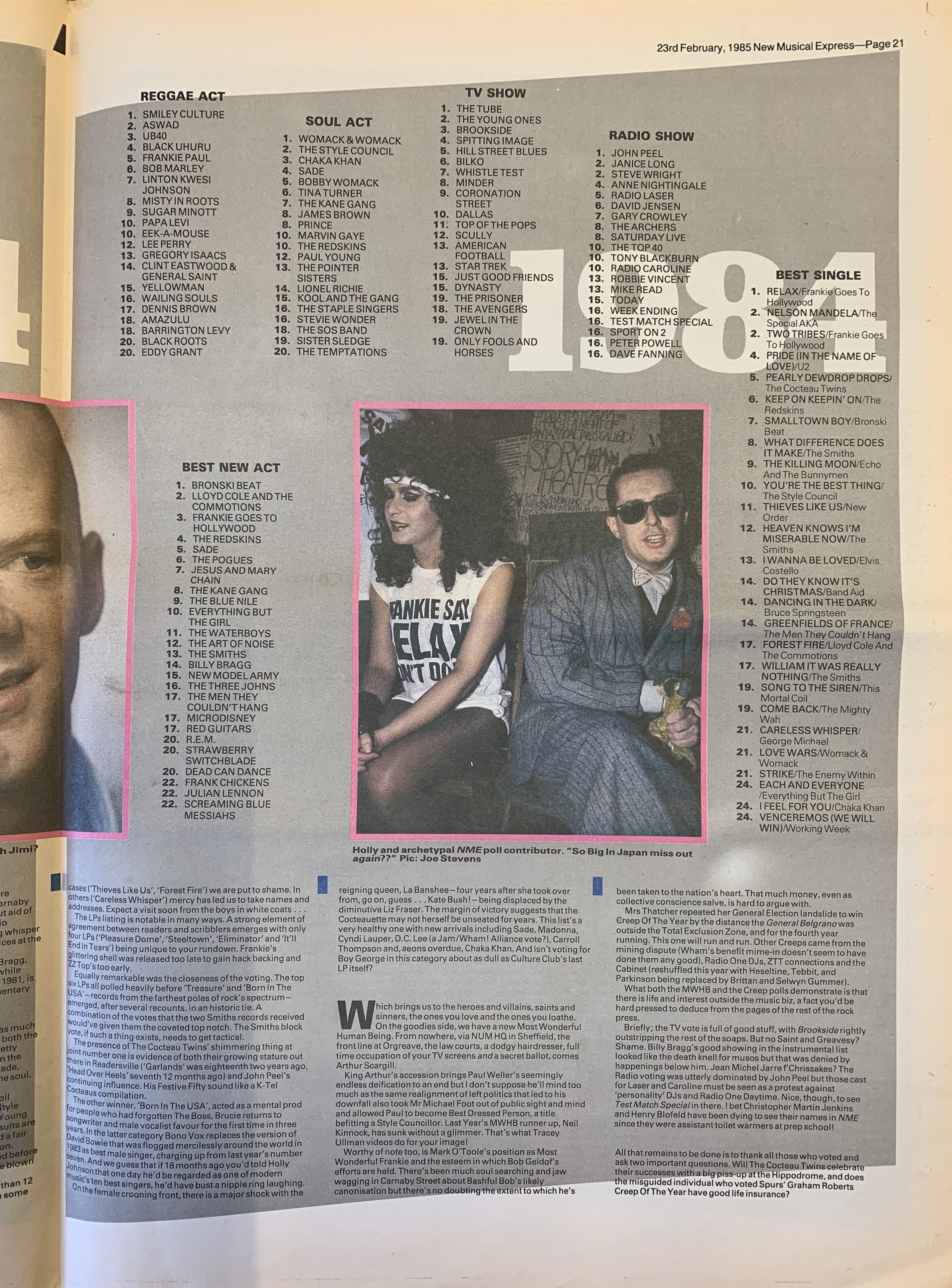 NME – 23 February 1985 Posted byNick StuckenborgMay 28, 2022September 24, 2023Posted inNMETags:1985, interview, NME, Smiths, Smiths 1985 Share this: Click to share on X (Opens in new window) X Click to share on Facebook (Opens in new window) Facebook Like Loading... Related Published by Nick Stuckenborg Archivist. Cinematographer. View more posts