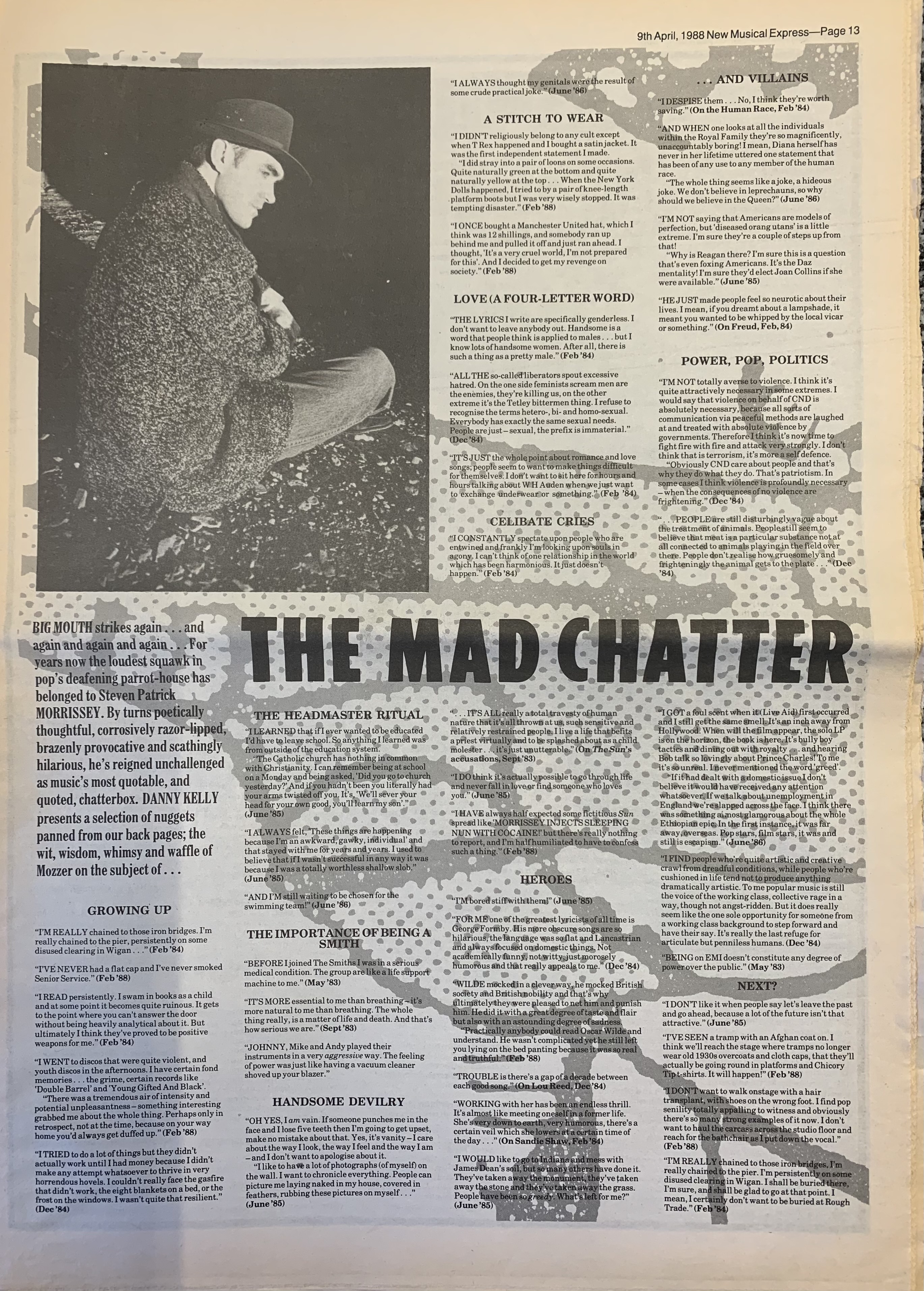 NME – 9 April 1988 Posted byNick StuckenborgMay 28, 2022May 28, 2022Posted inNMETags:1988, 1988 Morrissey, interview, Morrissey, NME Share this: Share on X (Opens in new window) X Share on Facebook (Opens in new window) Facebook Like Loading... Related Published by Nick Stuckenborg Archivist. Cinematographer. View more posts