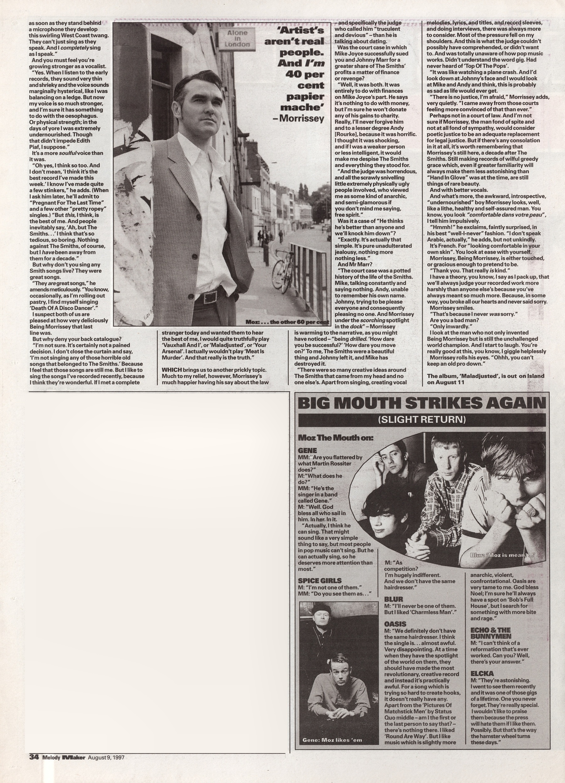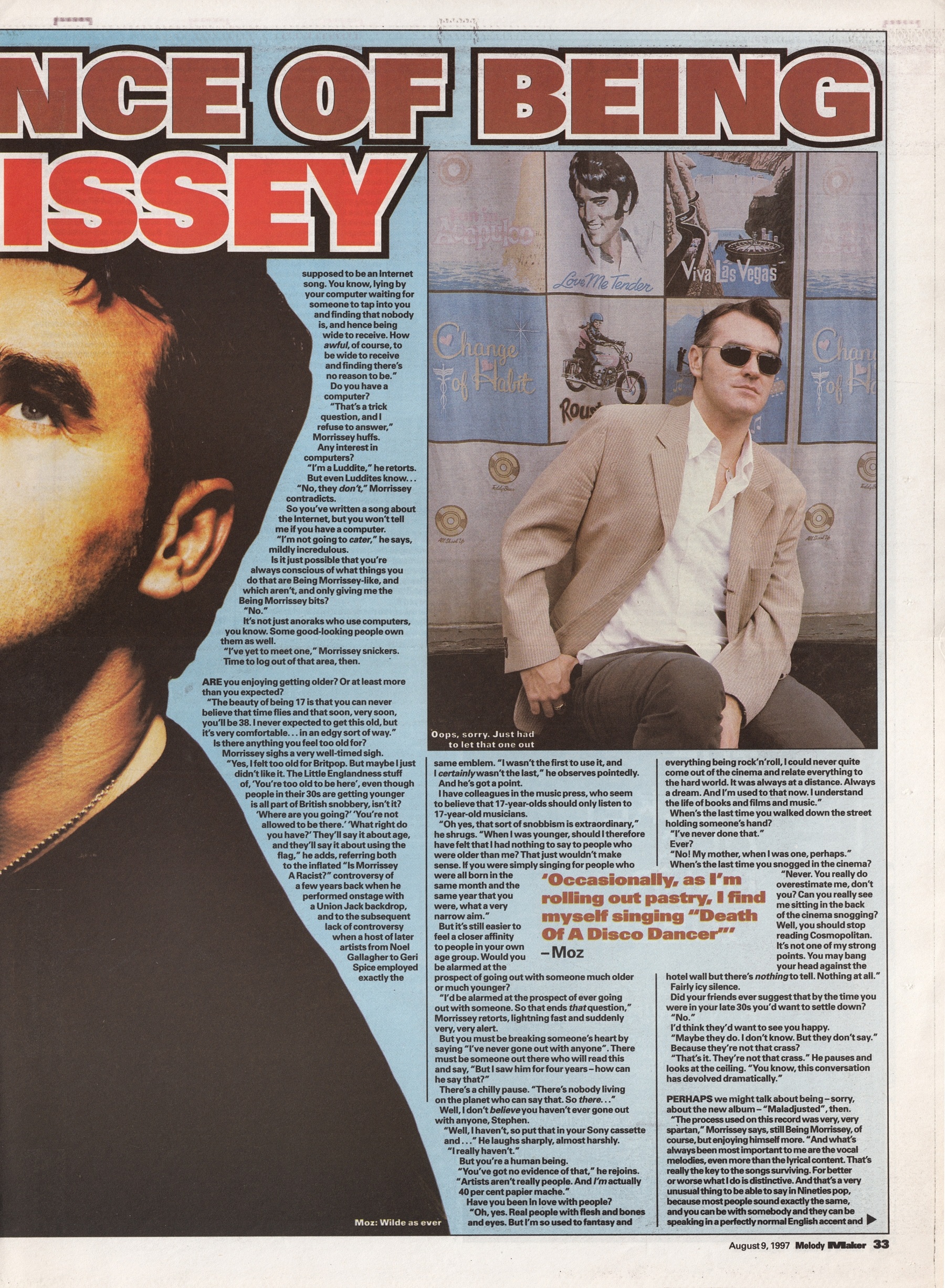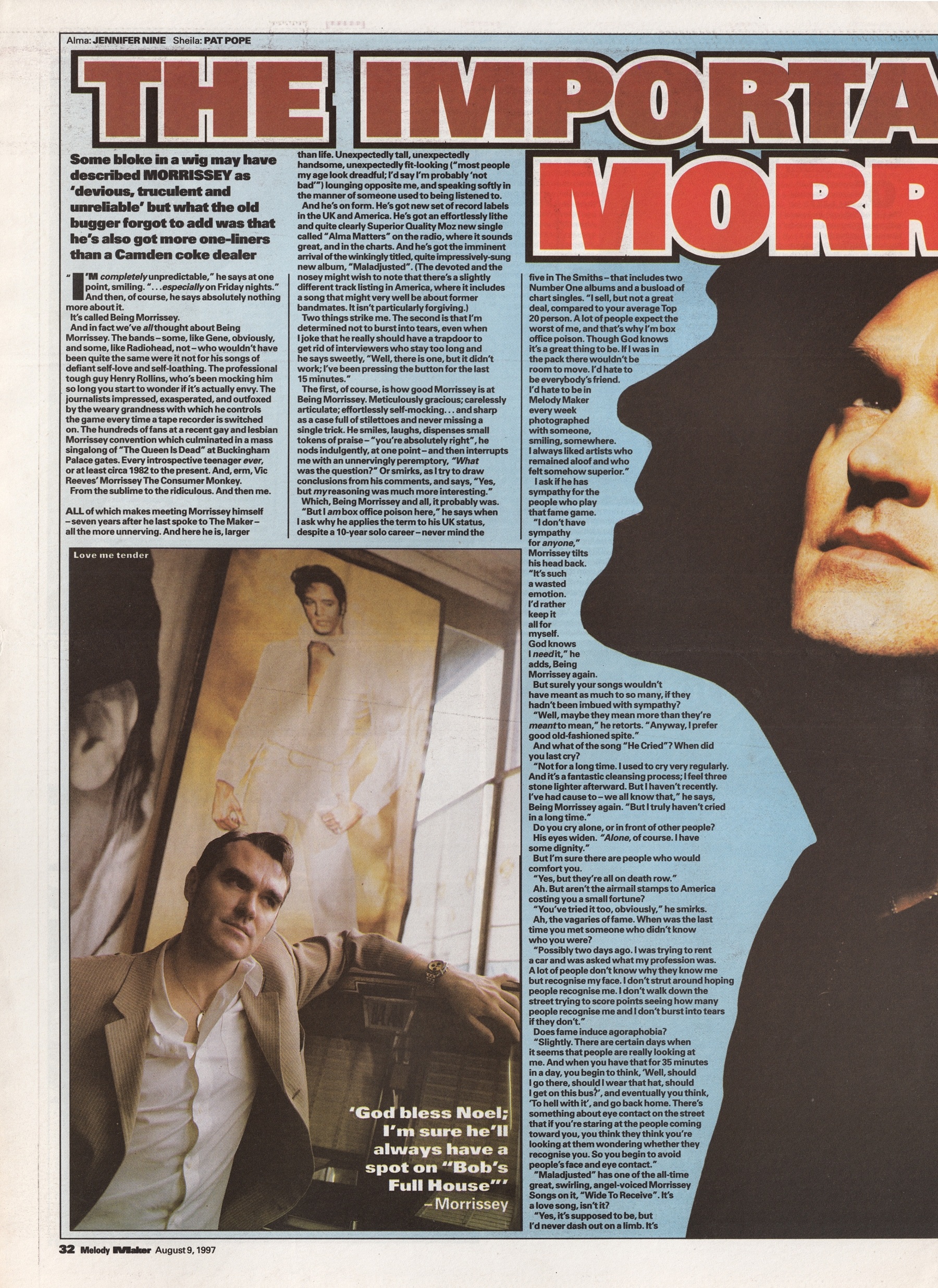 Melody Maker – 9 August 1997 Posted byNick StuckenborgAugust 11, 2022Posted inMelody MakerTags:1997, 1997 Morrissey, interview, Melody Maker, Morrissey Share this: Share on X (Opens in new window) X Share on Facebook (Opens in new window) Facebook Like Loading... Related Published by Nick Stuckenborg Archivist. Cinematographer. View more posts