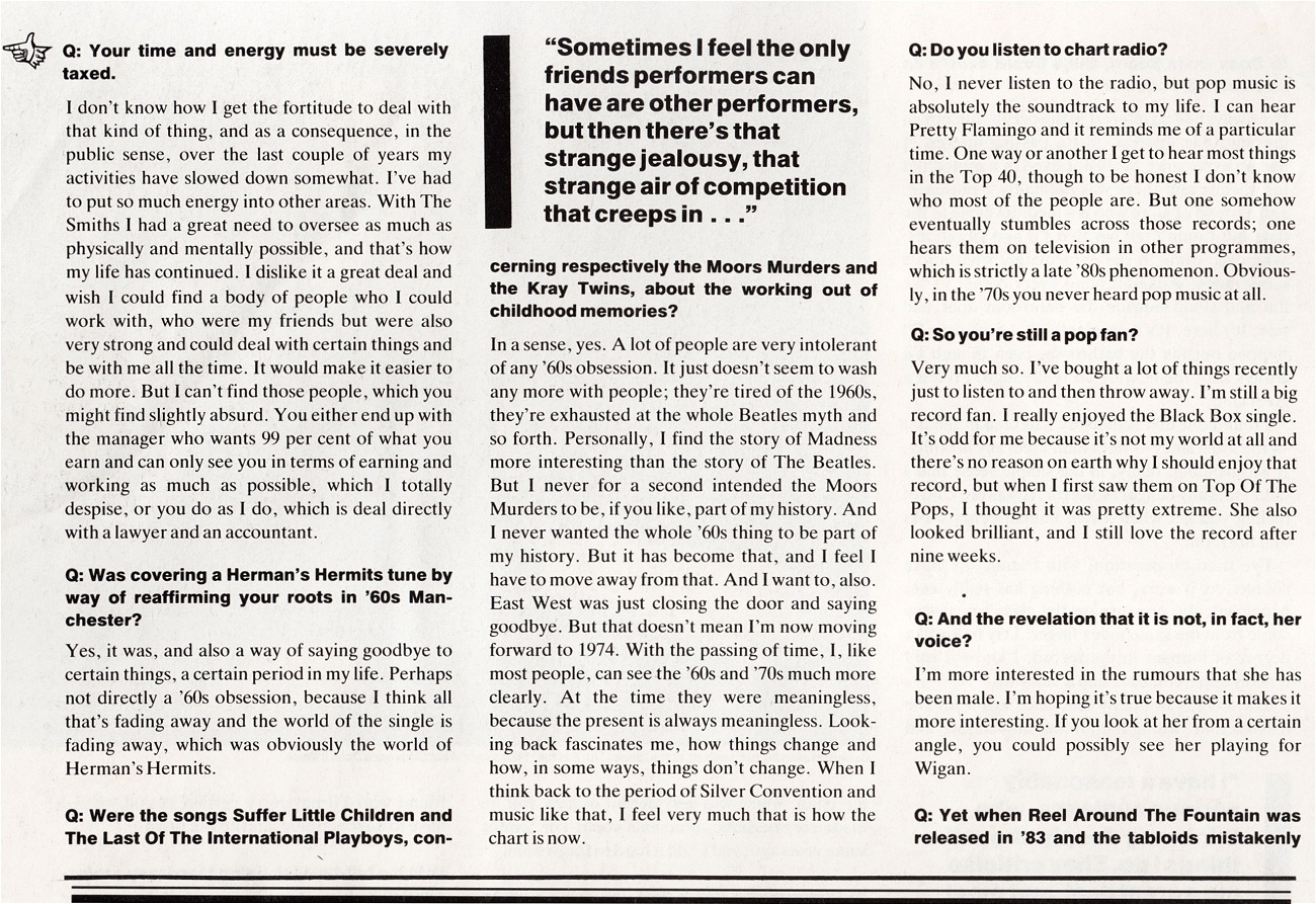 Q – December 1989 Posted byNick StuckenborgJanuary 9, 2023Posted inQTags:1989, 1989 Morrissey, interview, Morrissey, Q Share this: Share on X (Opens in new window) X Share on Facebook (Opens in new window) Facebook Like Loading... Related Published by Nick Stuckenborg Archivist. Cinematographer. View more posts