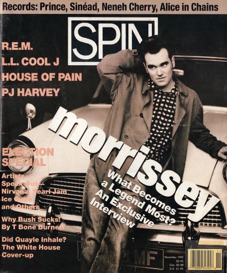 “Titled “No Sex Please, I’m Morrissey”. Interview by Robert Chalmers (done in Houston, October 1992). Photos by Linder Sterling from “Morrissey Shot”. Topics: “Your Arsenal”, success in North America, the press, the Finsbury Park incident, the Union Jack and the racism rumours, growing up in Manchester, heroes, his christian name, “The Severed Alliance”, Rourke And Joyce, celibacy, homo-erotic imagery.”